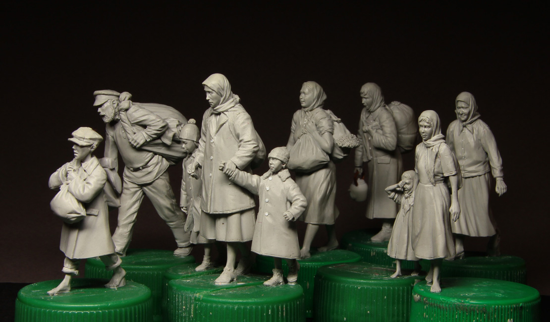 Первые три фигурки по известной фотографии (на самом деле есть три фотографии этой матери с детьми).