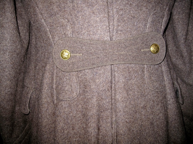 Очень необычная - прямоугольная форма хлястика под ремень. Первый раз такую вижу.