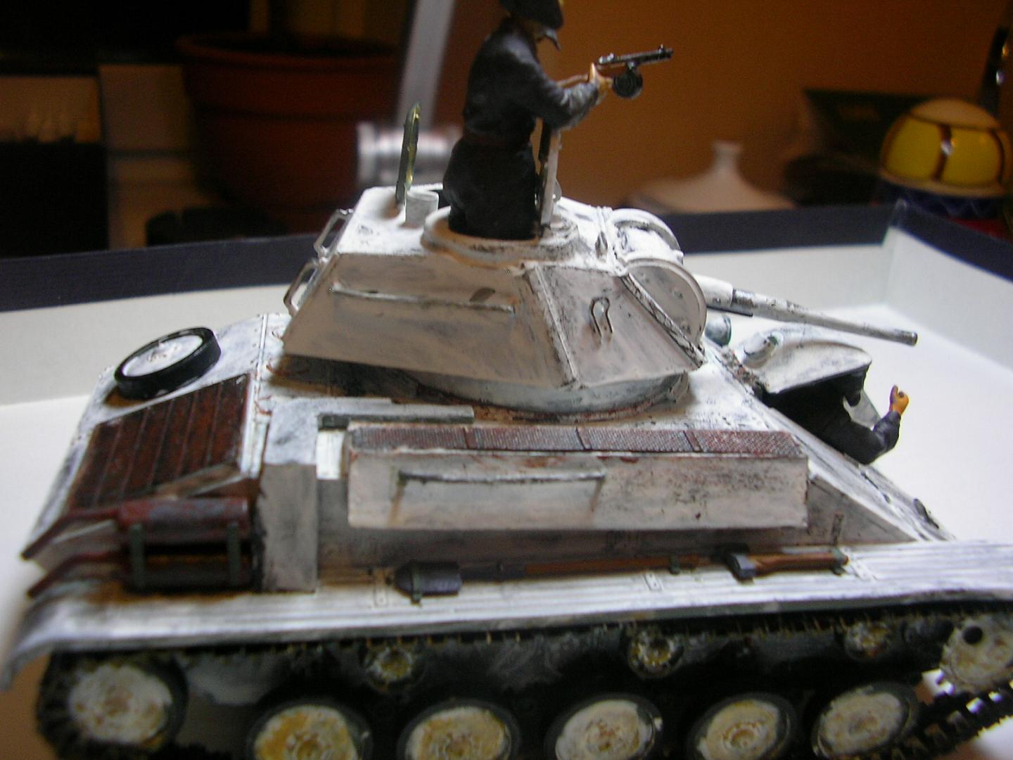 Чеботарев Игорь, Не очень хорошо смотрятся рыжие пятна на крыше корпуса и башни- как будто ржавая вода лужами стояла. Циммерит удался, тут нечего сказать. Но обкарнать в районе попаданий его стоит. Удачи!