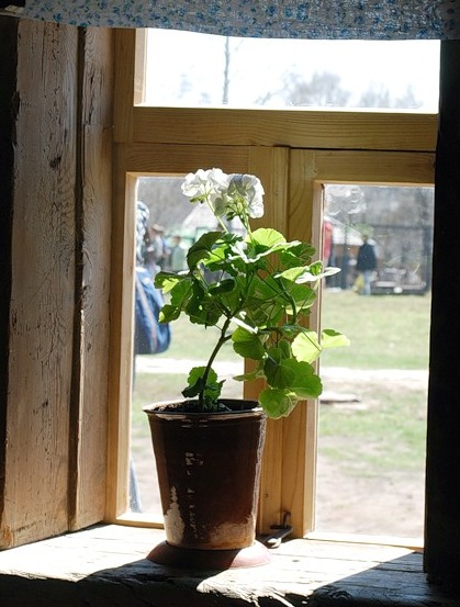 В. Астафьев "Пастух и пастушка" небольшой отрывок "... Комната убрана просто и чисто.Широкая скамья со спинкой, на ней половичок, расшитый украинским орнаментом , пол земляной, но гладко, без щелей мазаный. Среди комнаты, в деревянном ящике, - раскидистый цветок с двумя яркими бутонами. На подоконнике тоже стояли цветы в ящиках и старых горшках ...". Довольно часто упоминается в литературе да и ,очевидно, повсеместно была распространена ГЕРАНЬ. Она до сих пор частый гость в деревнях и селах.