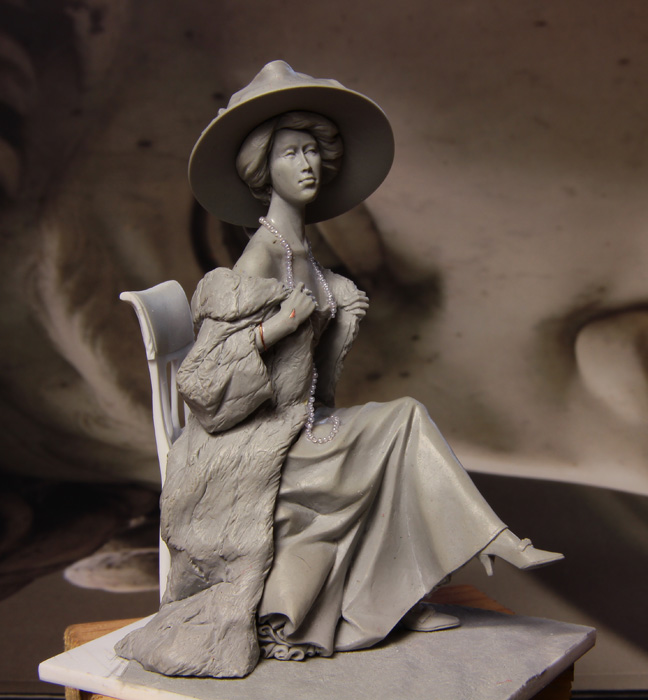 Лепил почти две недели под впечатлением от известного портрета Серова. Так же подпитывался впечатлениями от Больдини, других портретов Серова, стиля ар-нуво и моды той эпохи.
