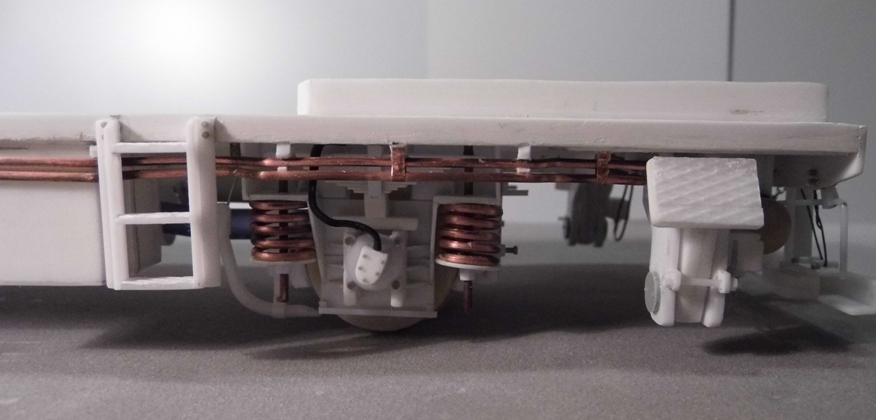 В работе использовал тамиевский пластик 0,3, 0,5, 1,2 и 2мм. Склеивал в разном сочетании для получения примерной масштабной толщины. Для стекол кабины тоже прозрачный пластик (PlaPlate) от Тамии 0,2мм. Колеса выливальсь из эпоксидной смолы. Резервуары - несколько витков пластика 0,3 на подходящем по диаметру предмте (напр. на ручке модельного резака), торцы лепил из двухкомпанентной шпатлевки от Тамии с последующей обработкой. Пружины из обычной проволоки из трансформатора (сейча ещё зазоры между некоторыми витками не отрегулированы). Корпус тонкой шариковой ручки вместо 2-х валов редукроров. Разные профили от Тамии - уголки, "н"-образный, "L"-образный, круглый от 1мм до 3-хмм. и др. Клепка и болты от Master Club. Изоляторы - металлические шайбы из строительного магазина в чередовании большего диаметра с меньшим. Будут ещё фары от Эльф белые и красные, причем белых в итоге около 8 штук. "Пол" на платформе будет ребристый (такой же как на боковых опорах). Делать его буду путем наклеивания на всю площадь полосок, которыми обвязаны например коробки от офисной бумаги. Цепочка от RB разного размера. Немного медной фольги, проводов. Рукава тормозной и напорной магистрали ещё предстоит сделать вместе с кранами, материал круглый пластик 2мм и кембрик. Изготовление пульта, приборов, кресел, ящиков, фигурок машиниста и помощьника, саму кабину и др. ещё впереди...