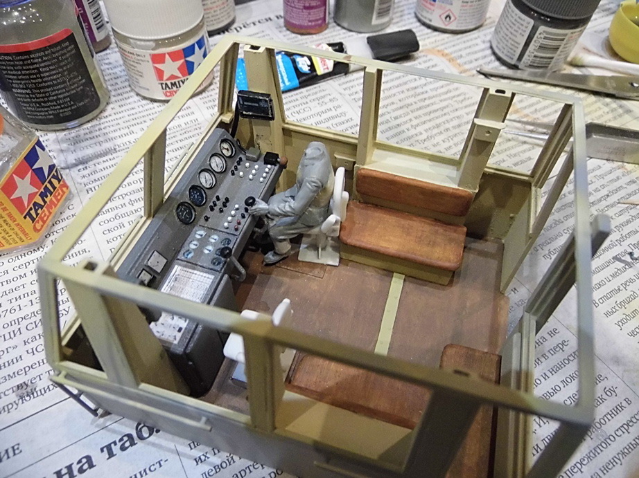Второе мега-событие не заставило себя ждать... Перед тем, как герметично закрыть кабину, навел порядок, протер стекла с внутренней стороны, аккуратно приклеил крышу. Потом с наружи точил, шкурил. Окрасил кабину и снял маски с окон - вся кабина внутри как будто в снегу. Все равно мелкая труха просочилась... Вид убийственный. Пришлось "вынести" дверь и почистить магкой кистью (сегодня продую феном), но фотки как получается все таки выкладываю.