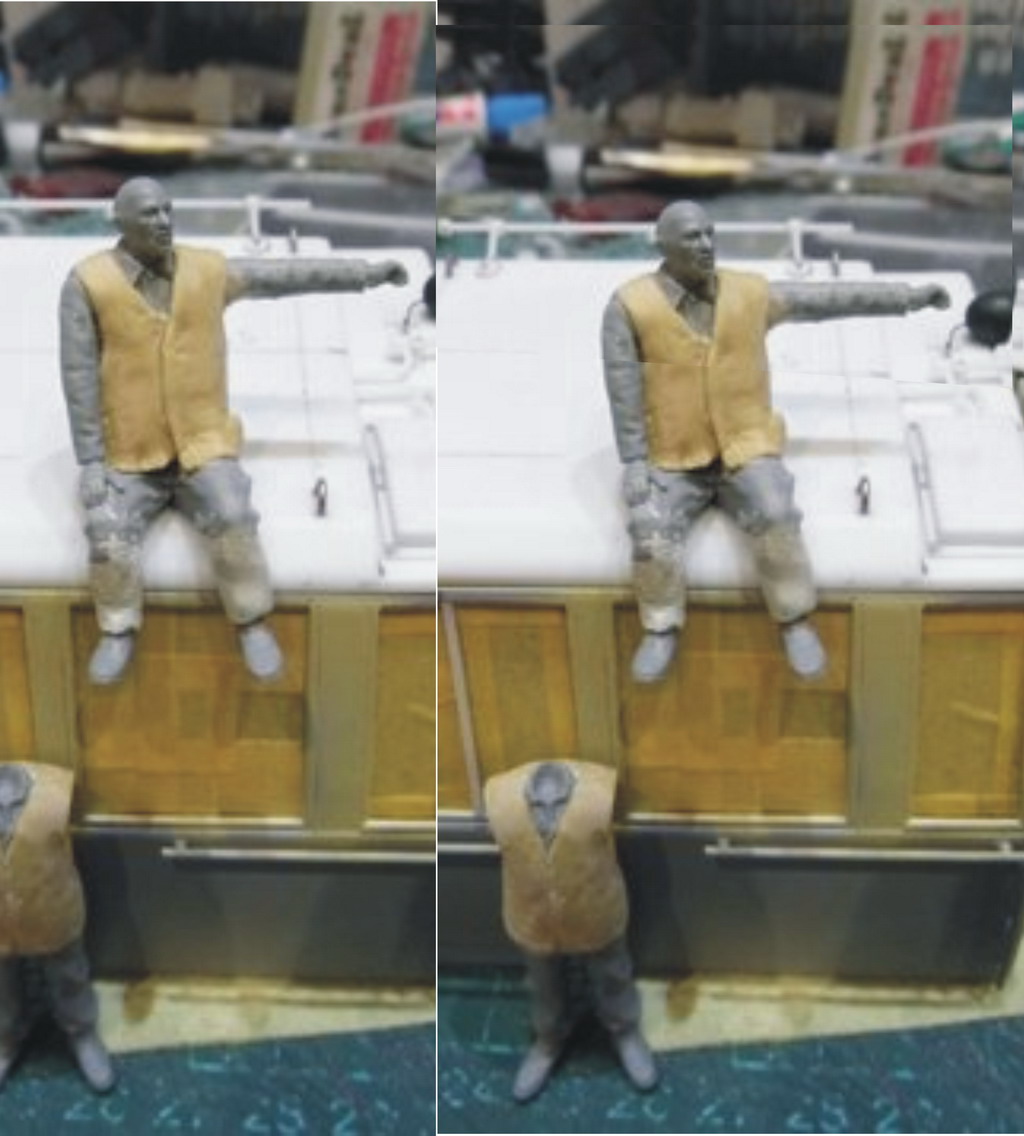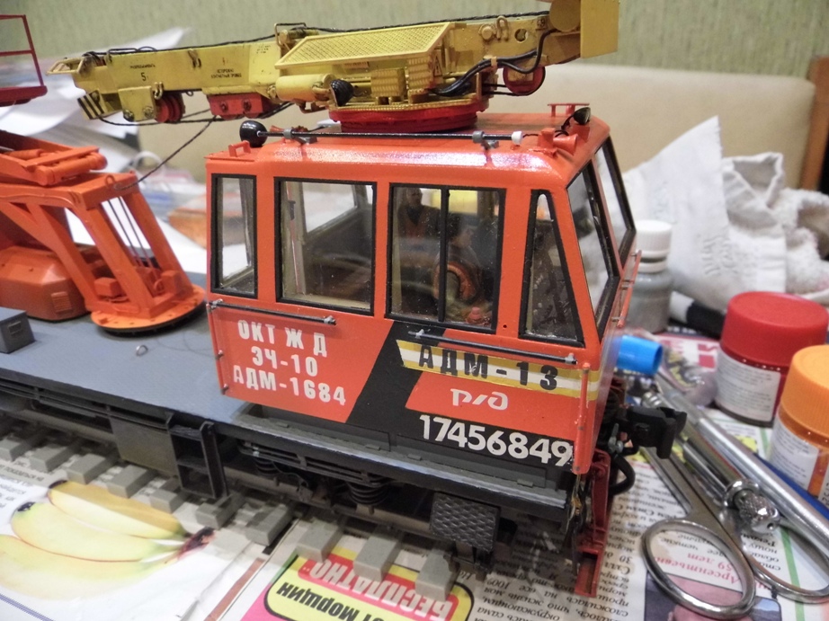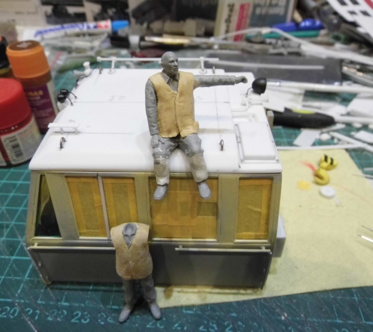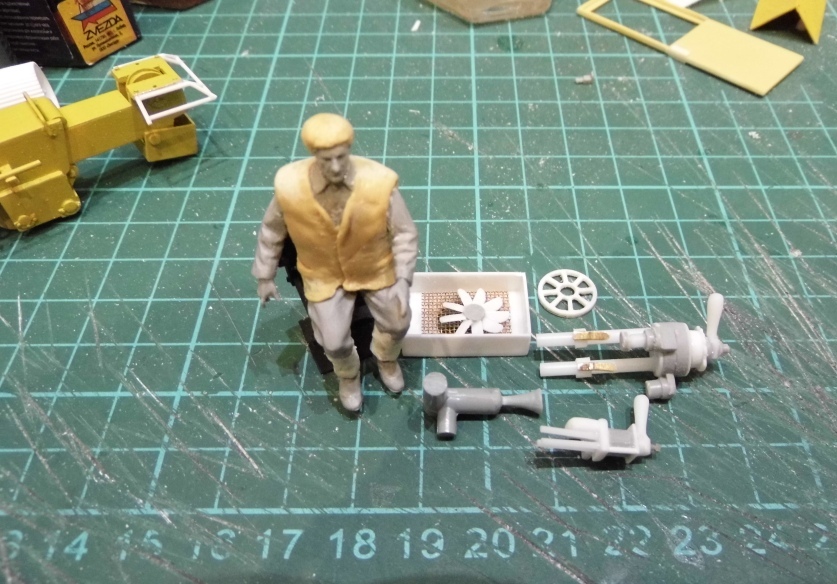 Вот такой будет машинист. Ещё на фото последние элементы кабины - краны машиниста, дудка сигнала и детали узла забора воздуха.