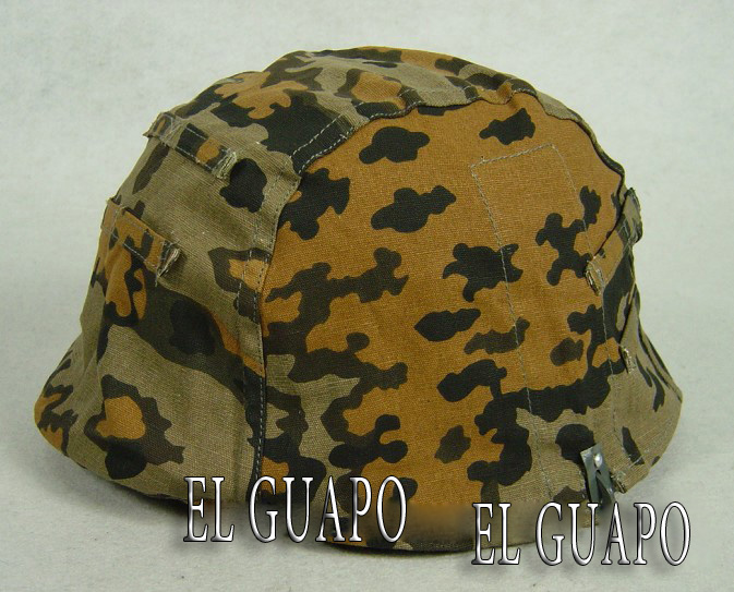 Оказалось не так просто что то найти по чехлу. За сутки просмотра инета наткнулся вот на эту фотку с подписью: "Чехол на каску камуфляжный. Дуб лето - осень. Чехол снабжён тремя металлическими зацепами и петлями для крепления веток. Данный вид камуфляжа использовался в основном фронтовыми частями СС и Фельджандармерии".