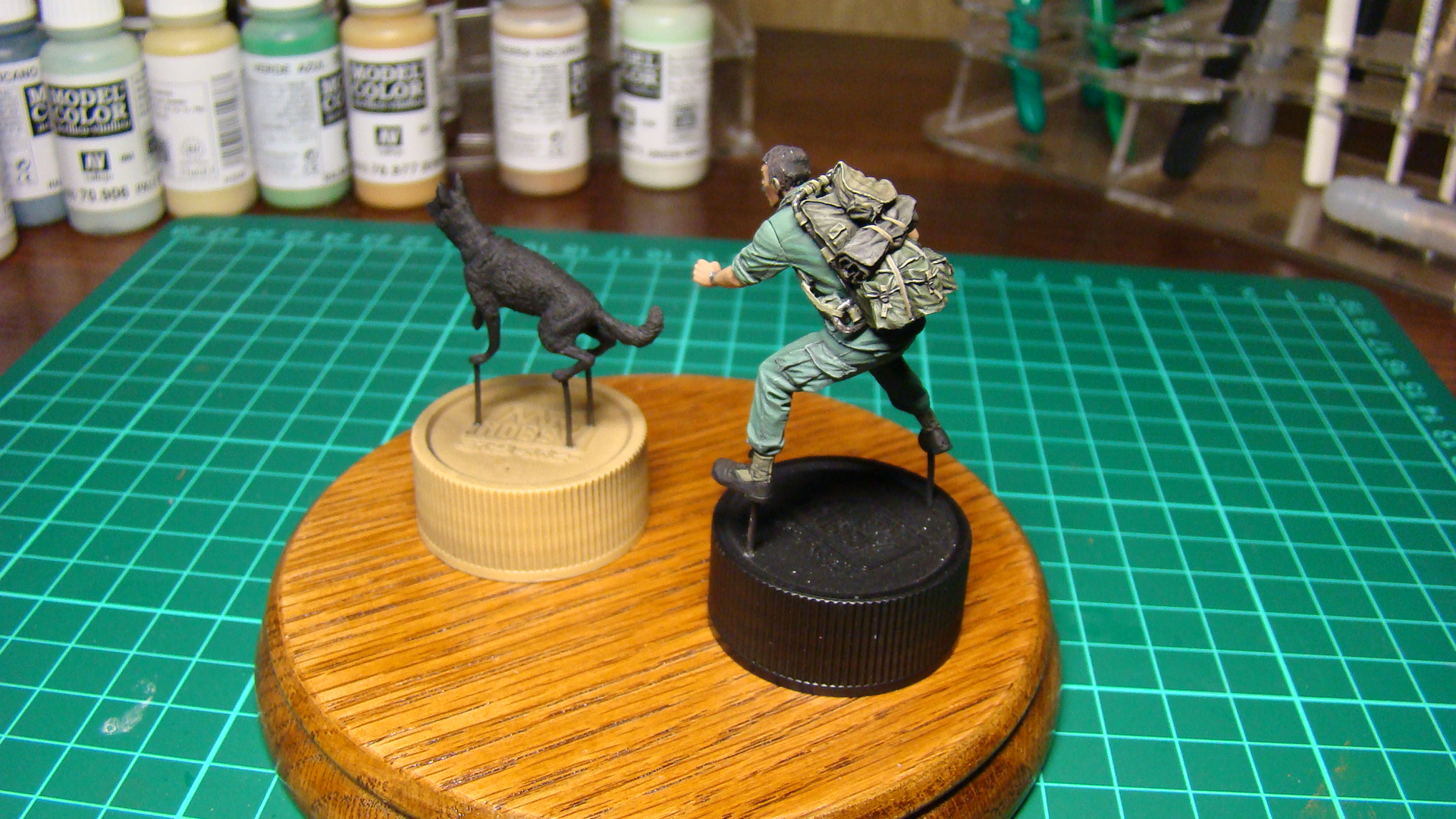 После долгого перерыва вновь взялся за кисть.Из за проблем с позвоночником,даётся это теперь не так легко,так что выбрал масштаб покрупней,хотя всё равно постоянно приходится исправлять ляпы и грязь.