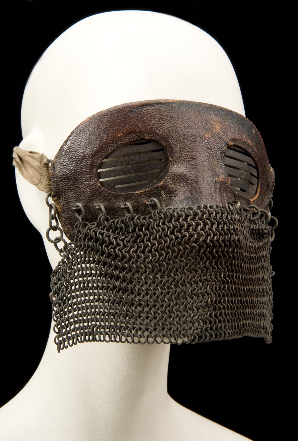 Маска, судя по фото музейных, ровно в ширину лица, собственно, чтобы её можно было нормально использовать. Хороших фото маски в надетом состоянии я не нашел.