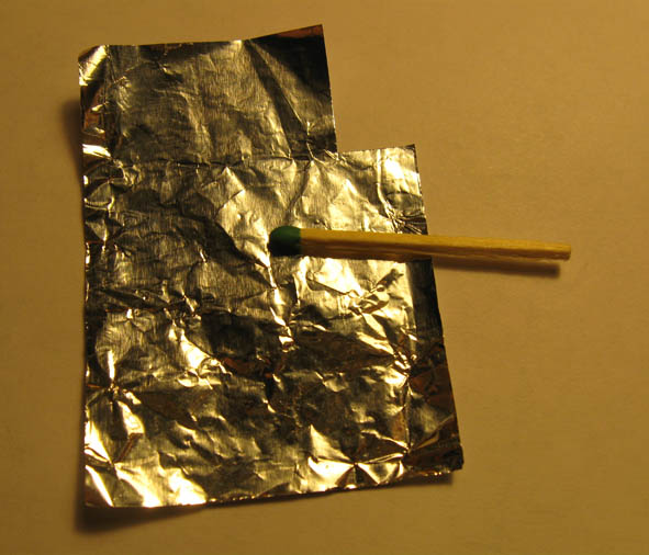 Потом по шаблону намечаем примерную длину на спичках- делаем риску. И наматываем фольгу на 2 спички- перед этим, что бы спички не расползлись- склеиваем их.