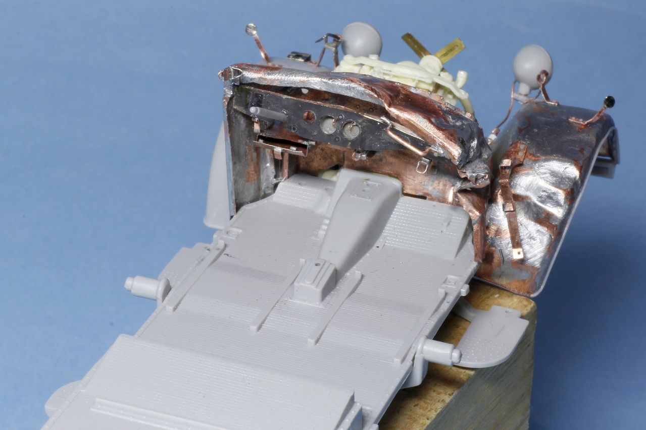 Медь паяется хорошо. Кроме того олово можно использовать как шпаклевку для формирования криволинейных поверхностей. Собственно, обширные белые пятна на крыле и прочих и есть результаты "шпаклевки" оловом.