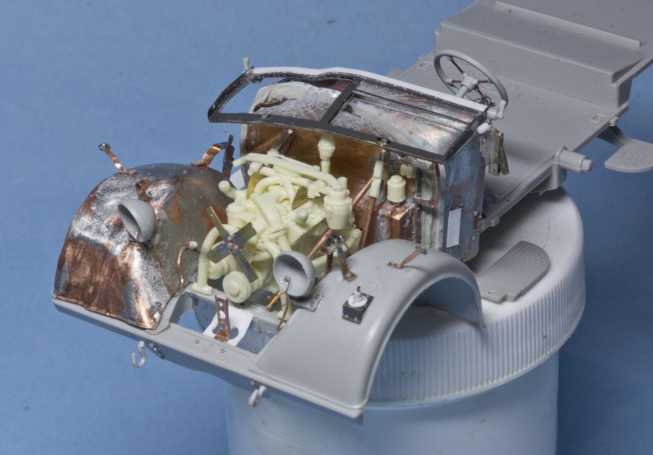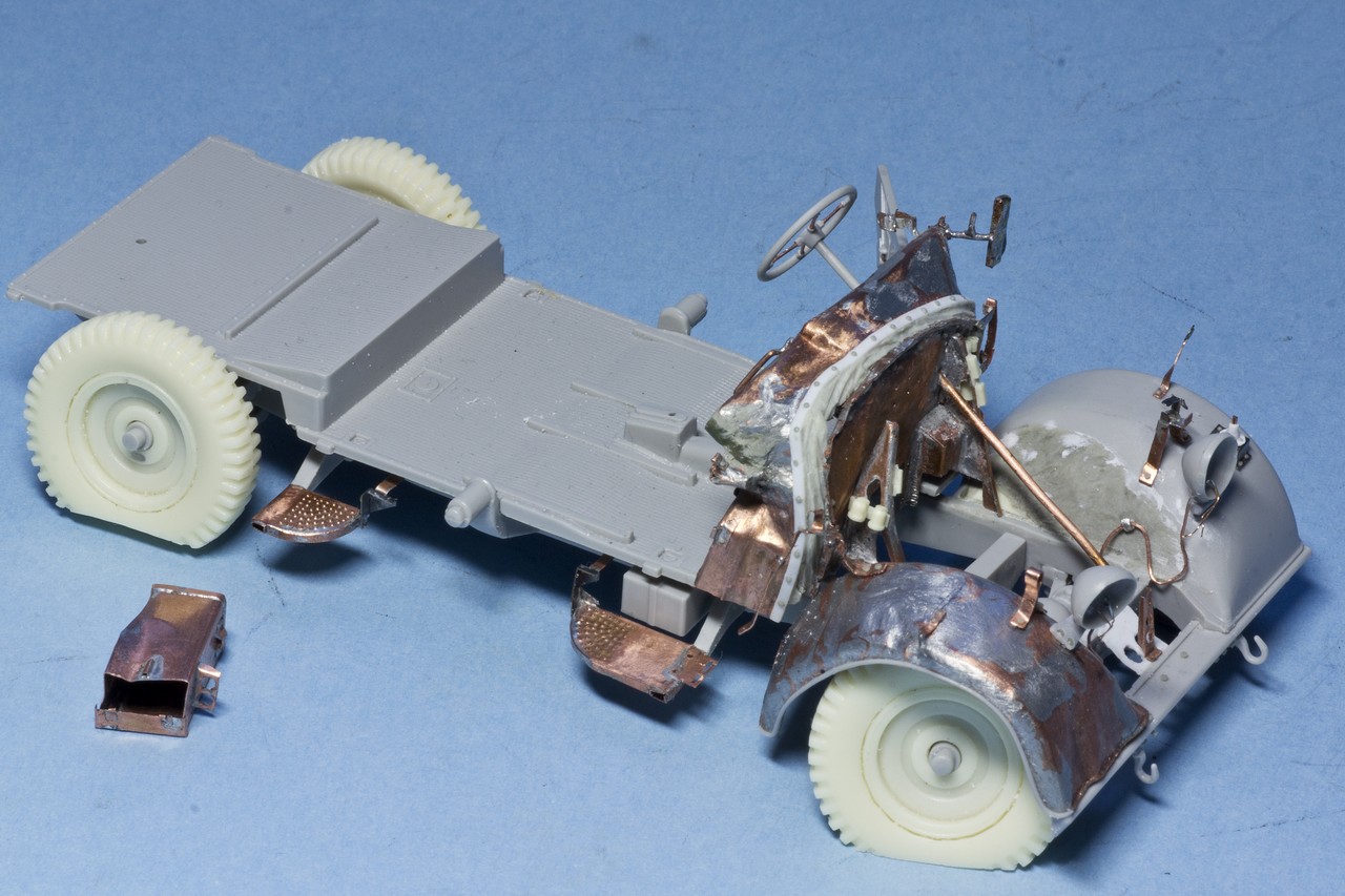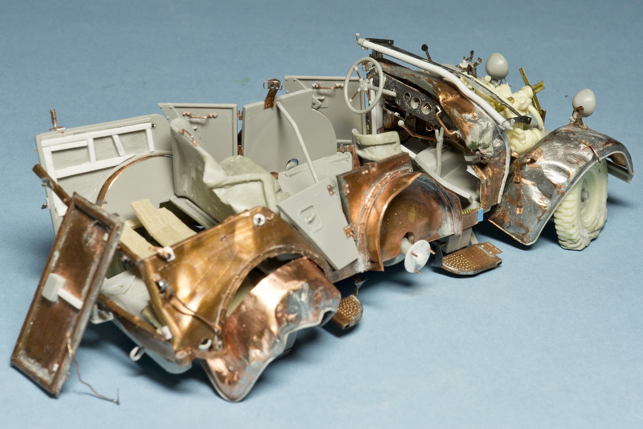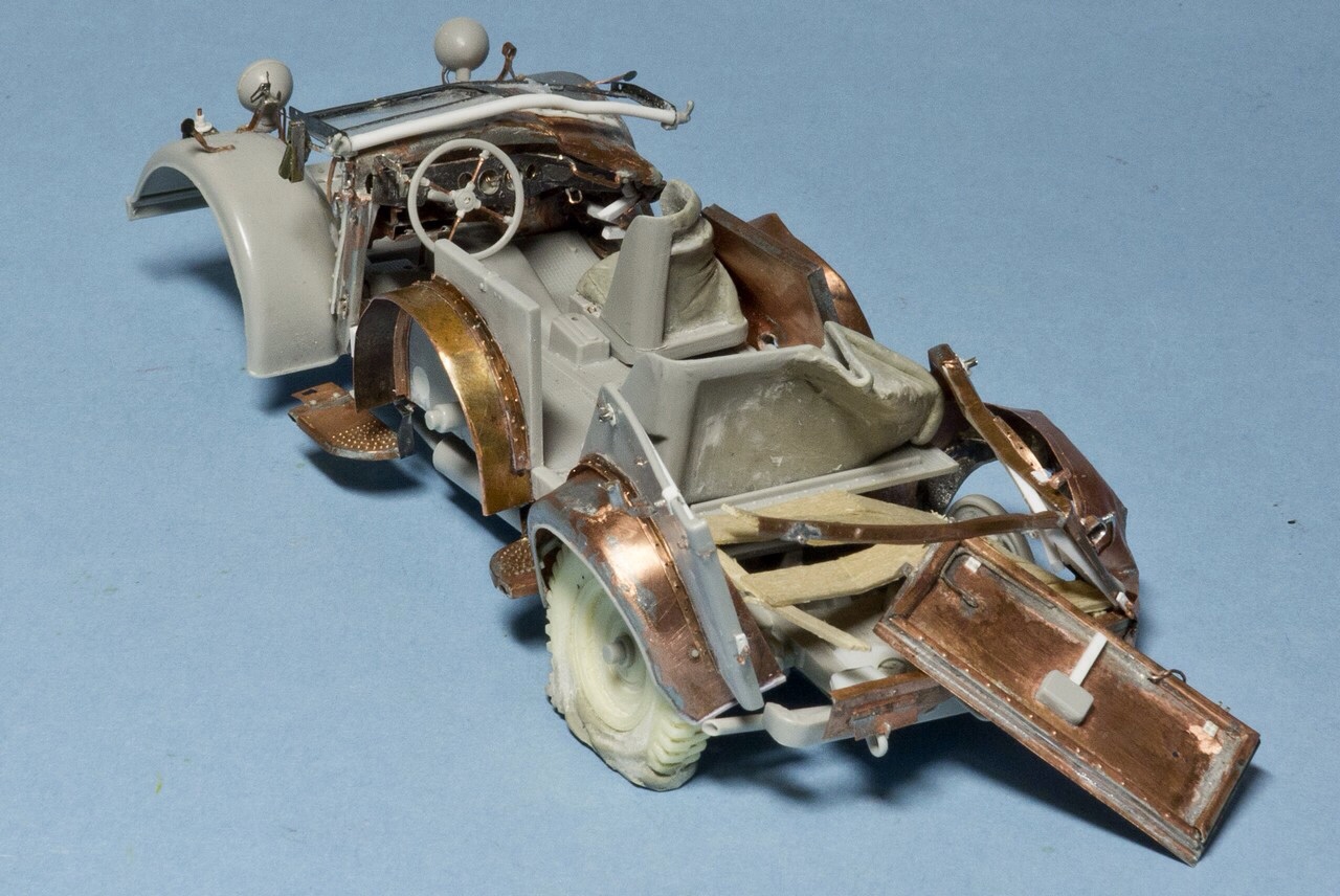 давно не обновлялся. Потихоньку мучаю раздавленный Хорьх. Пластик от Италери со множеством упрощений и ошибок + жутко кривое травление от Эдуарда, которое скорее мешает, чем помогает. Ну и плюс мои кривые ручки...