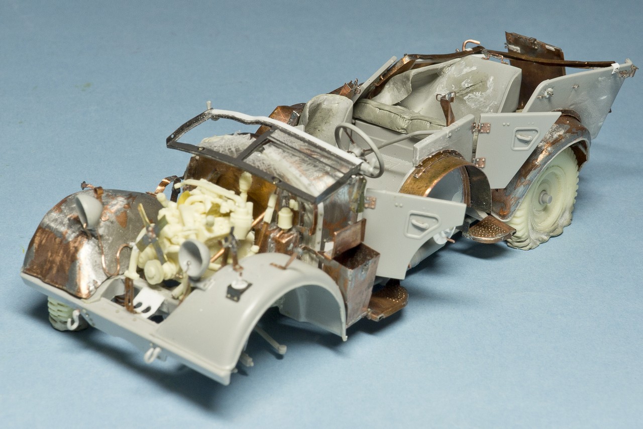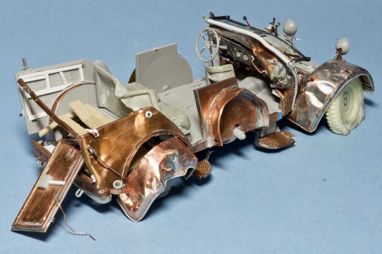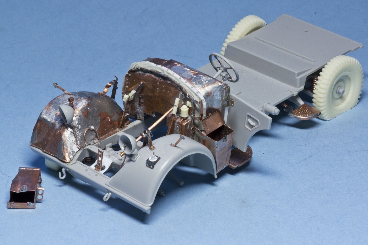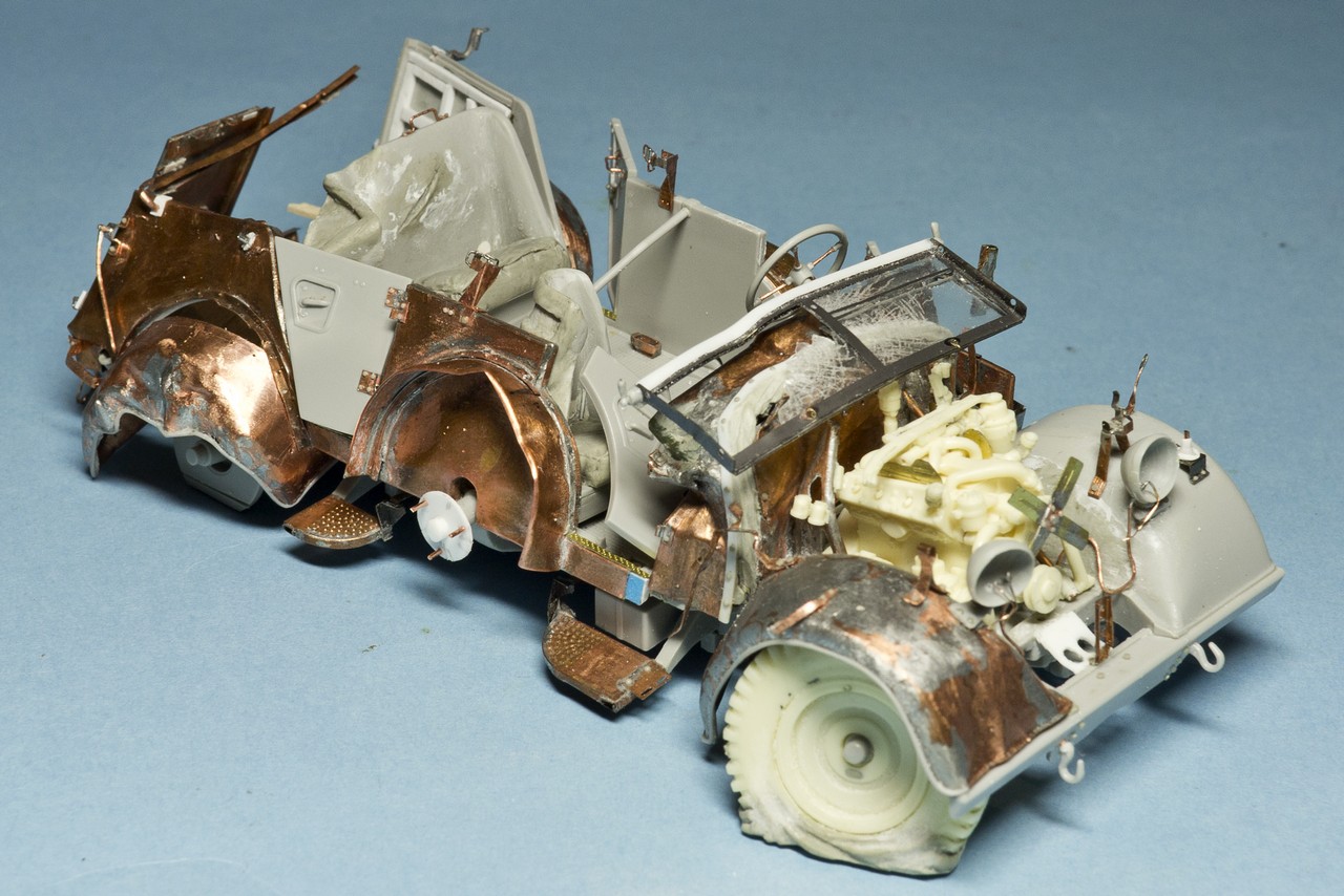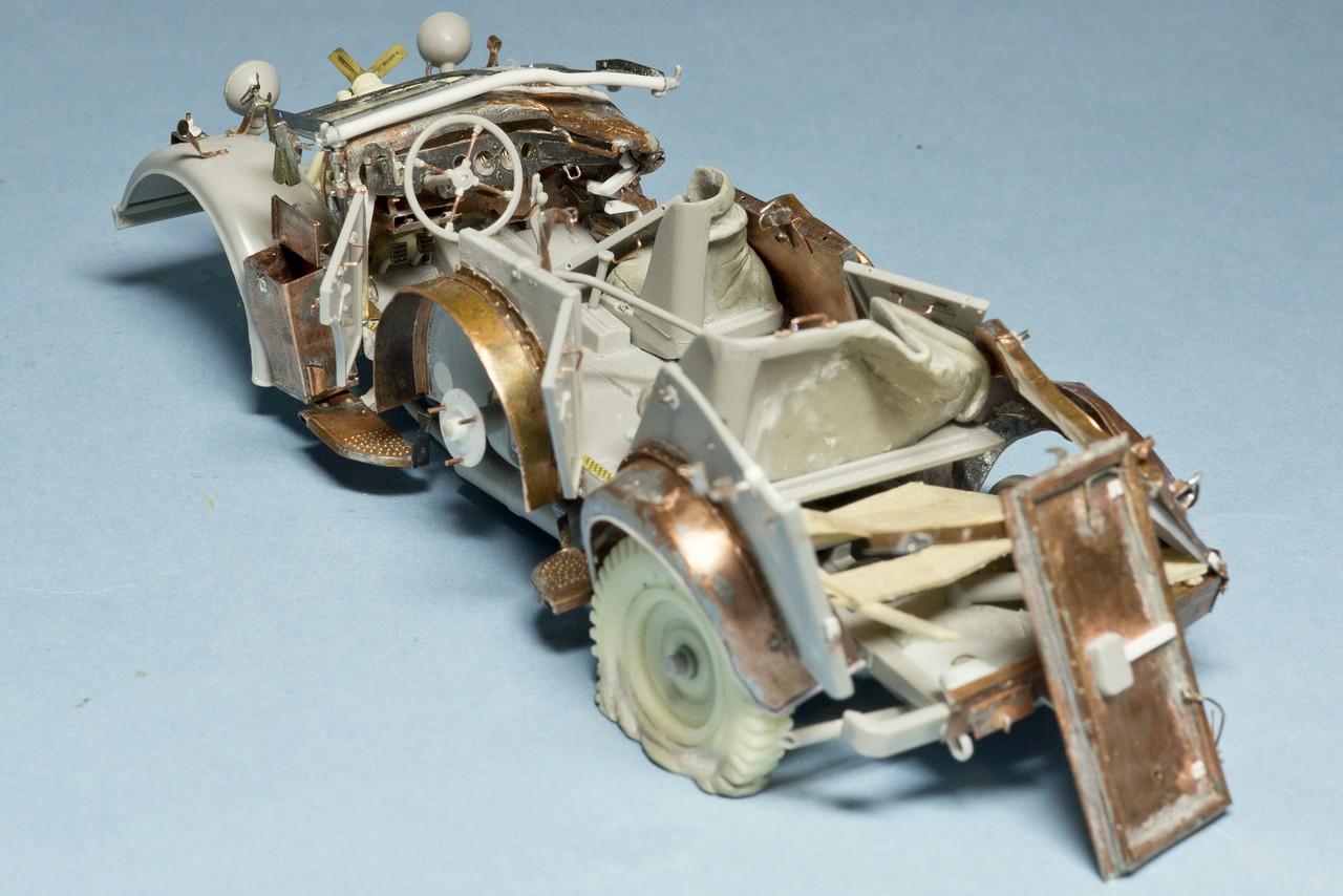 давно не обновлялся. Потихоньку мучаю раздавленный Хорьх. Пластик от Италери со множеством упрощений и ошибок + жутко кривое травление от Эдуарда, которое скорее мешает, чем помогает. Ну и плюс мои кривые ручки...