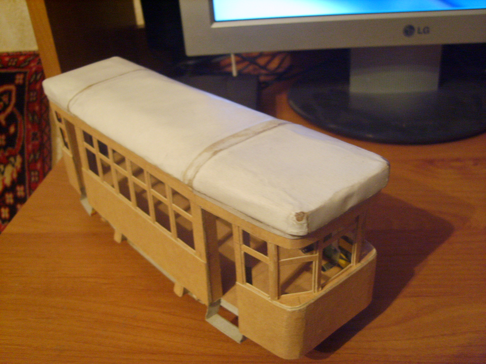 Трамвай полностью самодельный на 99% из картона и 1% дерева, пластика и металла.