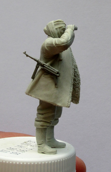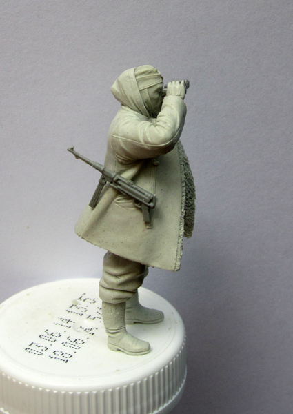 Высматривает наверное фатерлянд ,думаю при этом " куда я б... заперся." Ну а если серьезно - хорошая фигурка на зиму , но я бы уменьшил правую часть полушубка и складочку можно заложить для мягкости овчинки. Олег