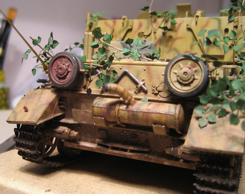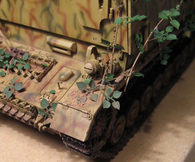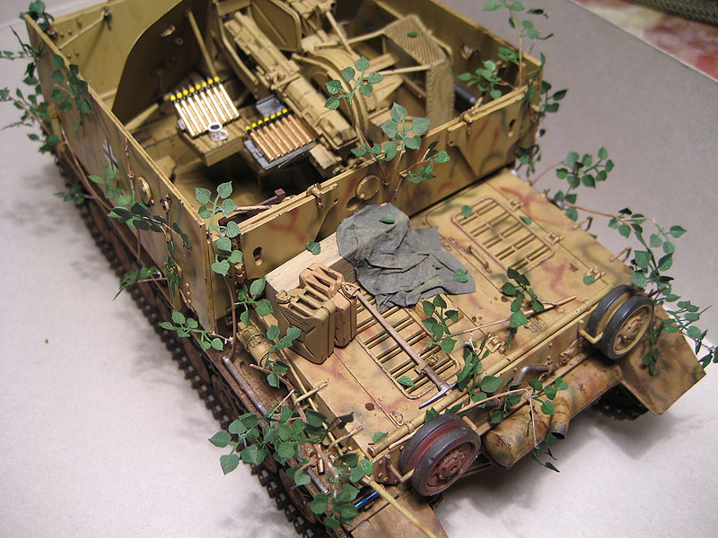 Затем на корме были уложены канистры, коробка и брезент. Все веточки были установлены на модель.