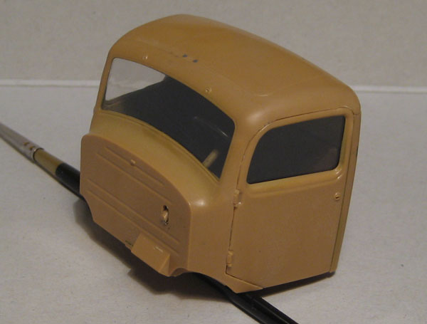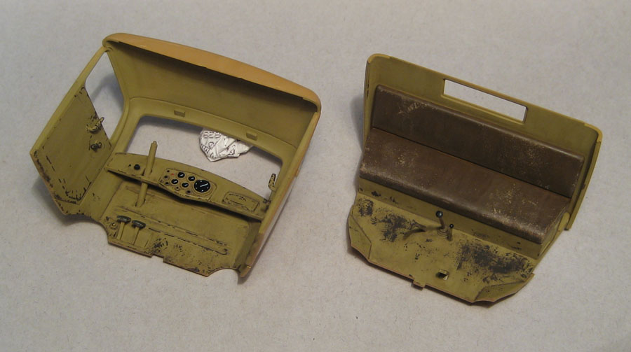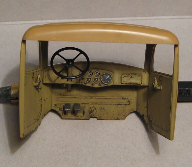 За крайний "подход" к модели сточил до масштабной толщины передние крылья, покрасил интерьер кабины и заклеил её и имитировал повреждения бортов кузова.