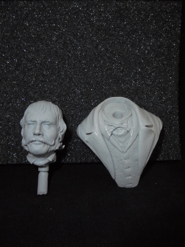 )С волосами и усами точно надо что-то делать.Опять же бакендбарды,ассиметричные глаза.На следующей неделе должен прийти бюст,тогда выложу крупным планом.Но если конечно удастся передать этот дьявольский взгляд,поведенные потом и блеском волосы,бакендбарды,бюст должен получиться на загляденье.Ну и роспись одежды отдельное творческое удовольствие.