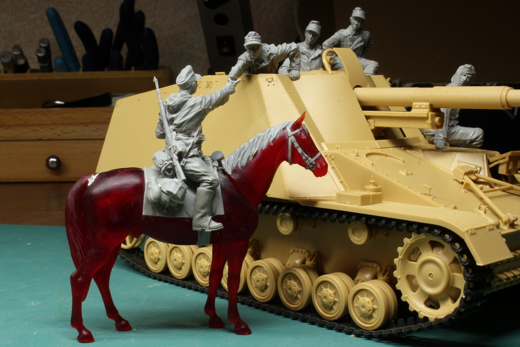Наконец-то закончил большой проект. Немецкие самоходчики и курьер на лошади. Лошадь от Chronos.