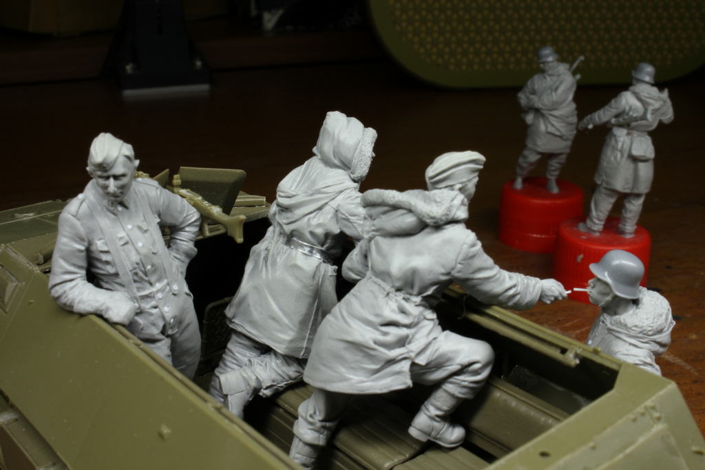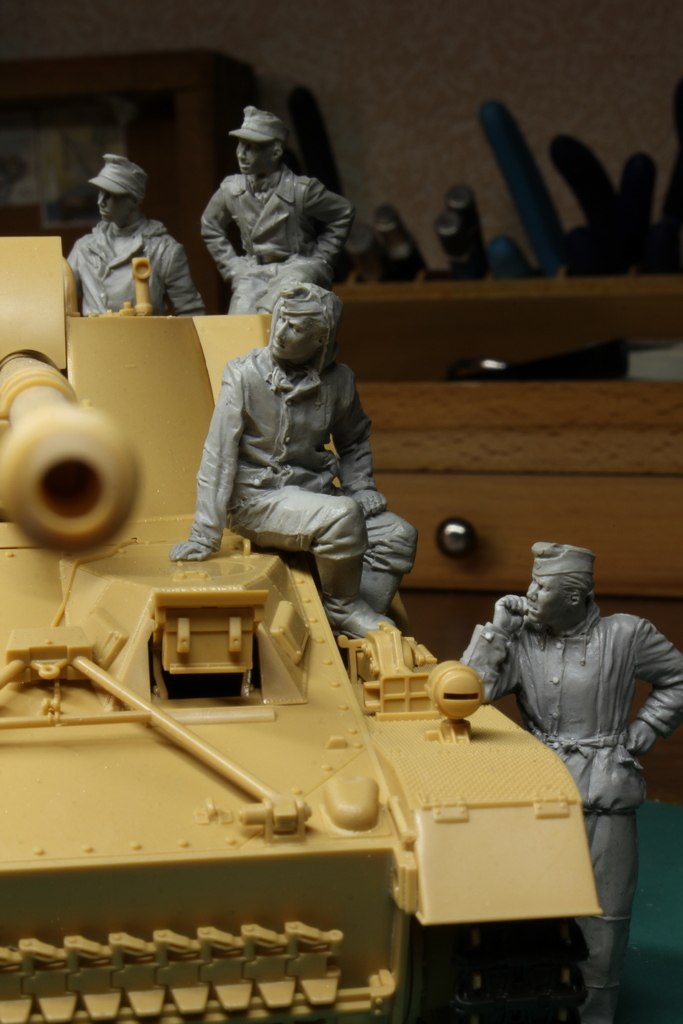 Anton, с этими интерьерными фигурками всё очень не просто. Можно много интересных сюжетов придумать: перезаряжает пулемёт, один танкист передает другому сигарету и т.п. Но тут сложности с интеграцией всего этого с интерьером. Не все будут делать вырезы в танках и нужно слепить фигурку так, чтобы её можно было вставить в готовый интерьер только лишь сняв крышу корпуса или башни или как там она почленена.