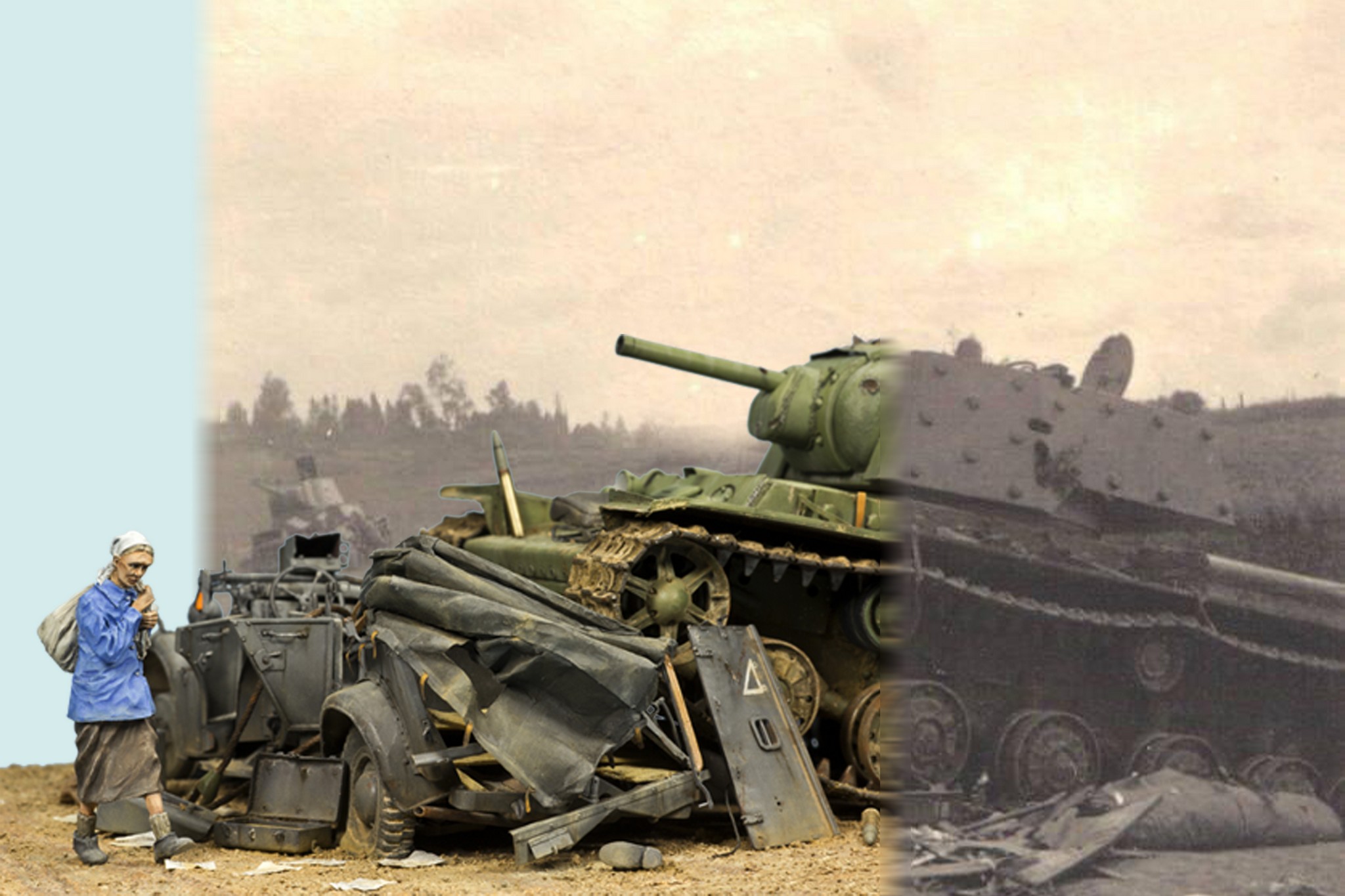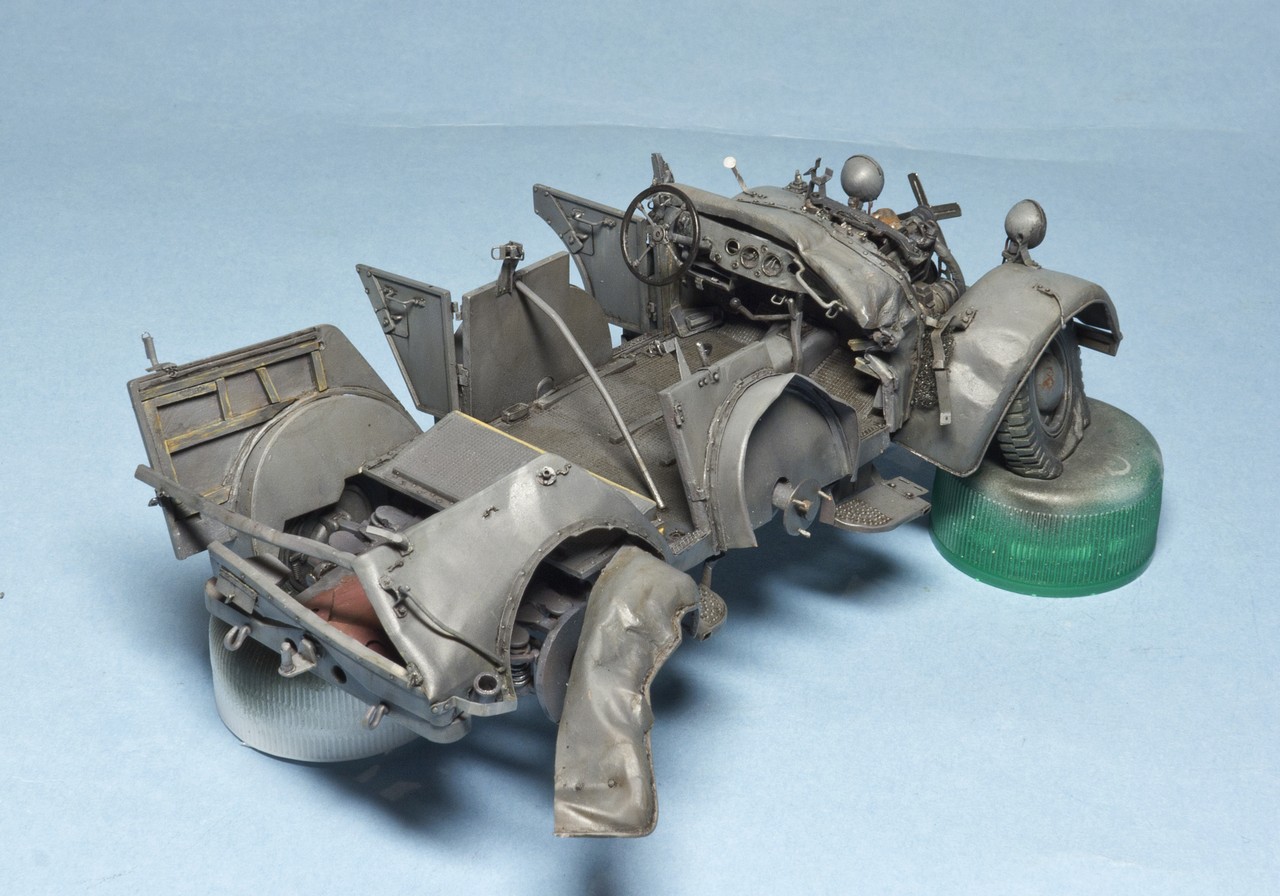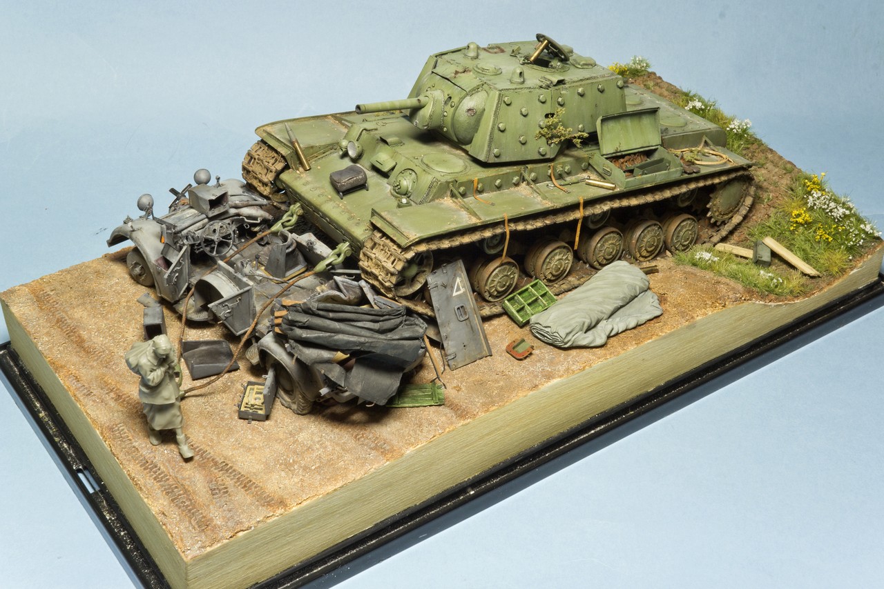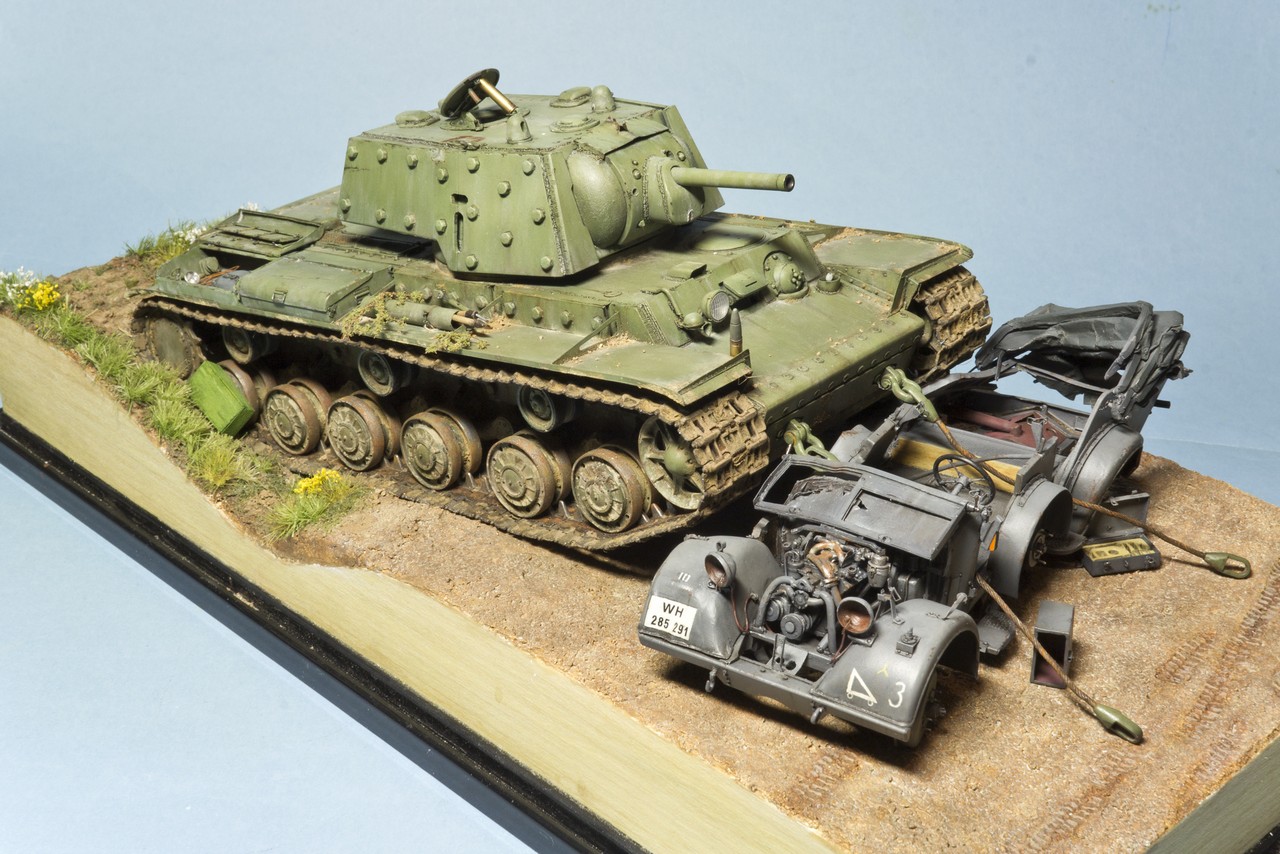 Получается супер!!! Один вопрос- два троса прямо на Хорьхе- почему именно такое расположение?! Если танк сам наехал на автомобиль, а потом его (танк) пытались вытащить, то не легче было избавится от Хорьха, отбуксировав в сторону, а потом тащить танк? мысли вслух..