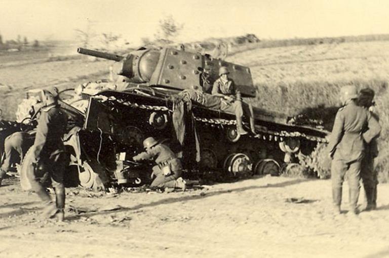 Немец с кувалдой не в тему. Этот конкретный танк немцы не ремонтировали и особо не разбирали. Только гусеницы разомкнули, а потом просто взорвали. А вот Хорьх распотрошили знатно...