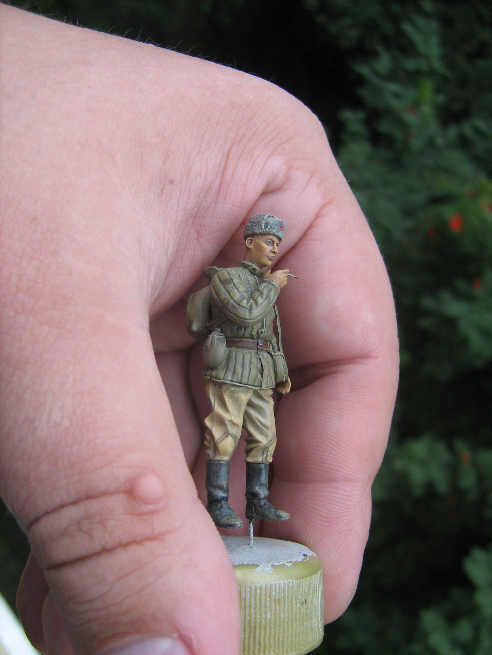 "звезду,только-бы потусклей" С этой проблемой можно справиться загрунтуйте из аера тонких слоем тамиевским акрилом! Подчеркиваю из аэра..Хочу отметить что уровень повышается с каждой новой фигуркой! Здорово! видимо к концу построения диорамы фигуры выйдут на шедевральный уровень!