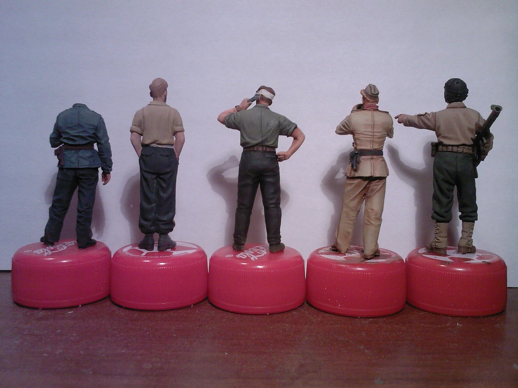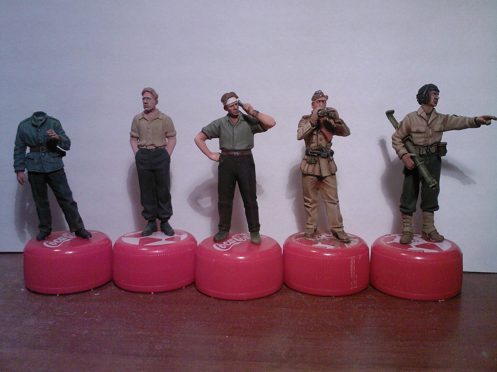 На столе образовался целый конвеер. Три центральных фигурки уйдут на диораму. Крайние пока не знаю куда.