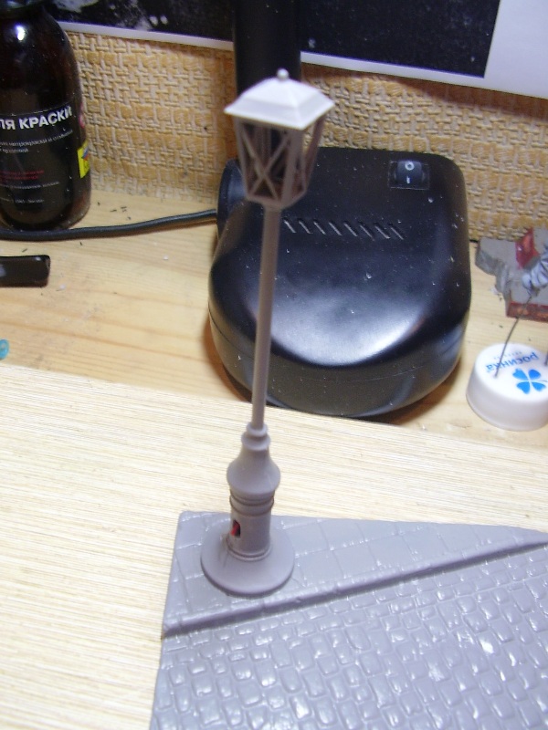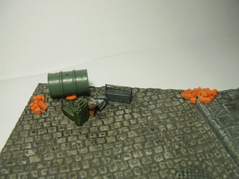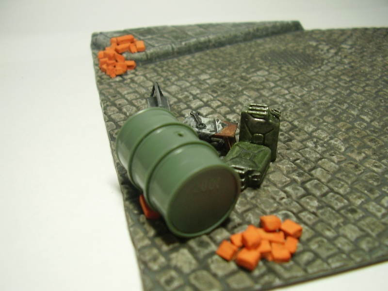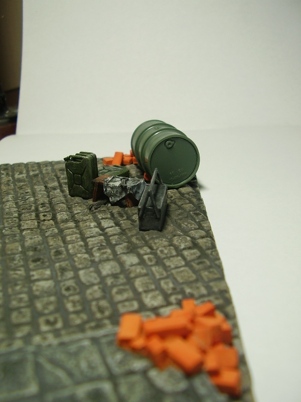 А не тесно ли на модели на таком основании?Фонарь зажат.Может развернуть модель и у фонаря сложить инструменты.А канистры с чем?Если с водой то и одной хватит,а если с топливом или пустые-чего их экипаж раскидал.Прошу не обижаться на мои комментарии.Модель на основании не просто набор элементов.Очень важна смысловая нагрузка.Почему так,а не иначе.У зрителя не должен возникать такой вопрос.Попробуйте разные варианты.Уверен вам самому понравиться искать возможные комбинации.С интересом буду наблюдать за дальнейшей работой. С уважением.