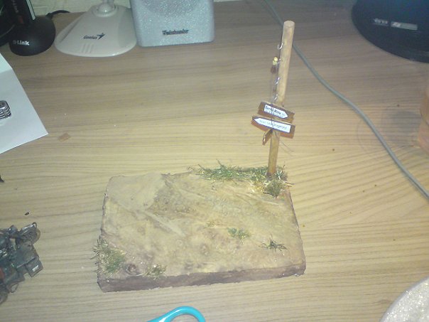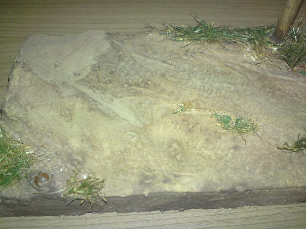 Лужу на основании заменил на "кусочек" земли, просто наложил туда массы для лепки фирмы Jovi. Основание покрывал пигмантами, красил, вот только жаль что фотоаппарат слабенький (фоткал на телефон 5mpx камера), когда буду в галерею отправлять - буду фотографировать на профессиональный.