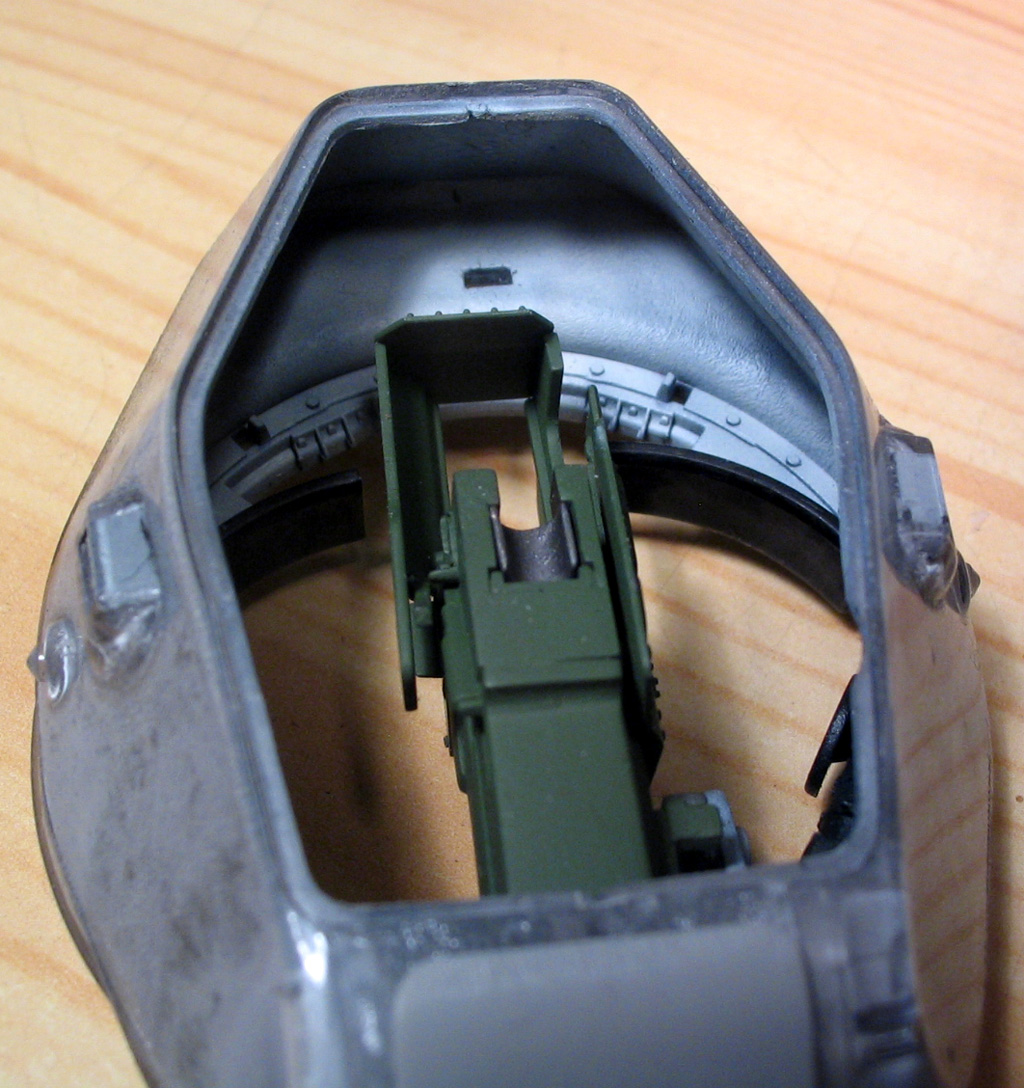 опять же заделано место стыка и проимитирована литая поверхность, затем закрашено чернои краскои. Рекомендую наносить черную краску как грунт и снутри и снаружи что бы башня затем не просвечивалась при хорошем освешении.