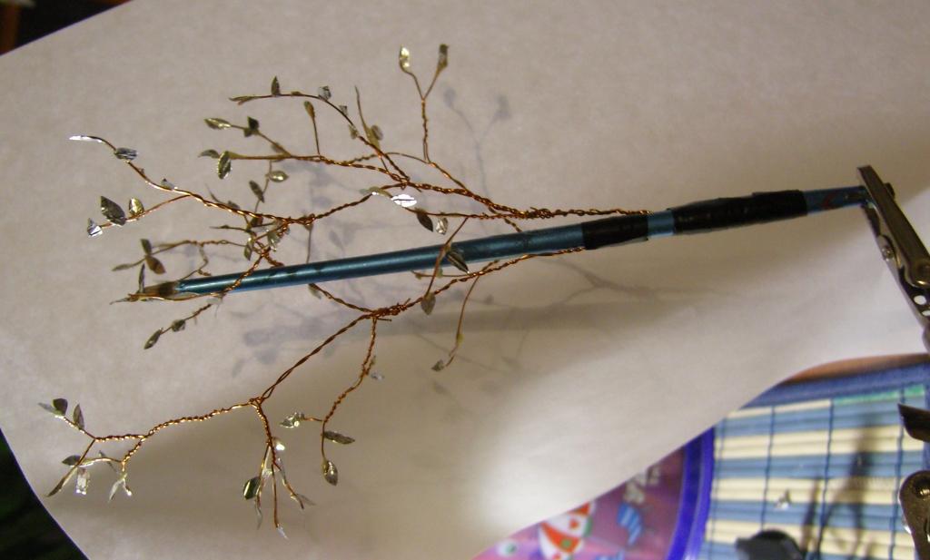 вот дерево.Изготавливаю из медной проволки,плотная медная фольга-листья,ствол-кисточка.