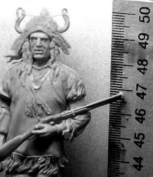 На индейскую тематику.Фигура этого года.К сожалению некоторые вещи не могу публиковать в полном виде-так как все права на фигуры проданы.90мм.Воин племени черноногих.