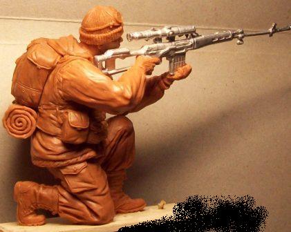 90мм-снайпер-чечня.Материал для лепки использую следующий.Смешиваю питерскую пластику-чешскую керам глину и премо приблизительно в одинаковых количествах.без добавления нашей пластики материал начинает напоминать полиэтилен.