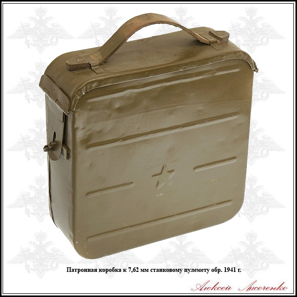 Склероз, но читал, что такие штампованные скругленные коробки пошли с пулеметной лентой с металлическим звеном с 43 года - хотя Максима с ней использовали.