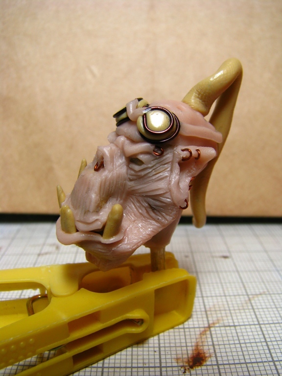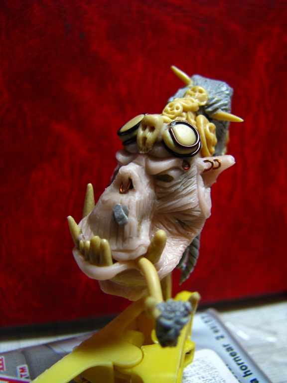 вынужденное отсутствие возможности окраски - маленький ребенок. заставило меня обратиться к лепке. решил слепить орка. умудренного в боях ветерана. пока работаю над головой. есть лицевая часть. затылок, грива и украшения на шлеме еще впереди.