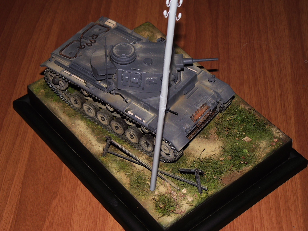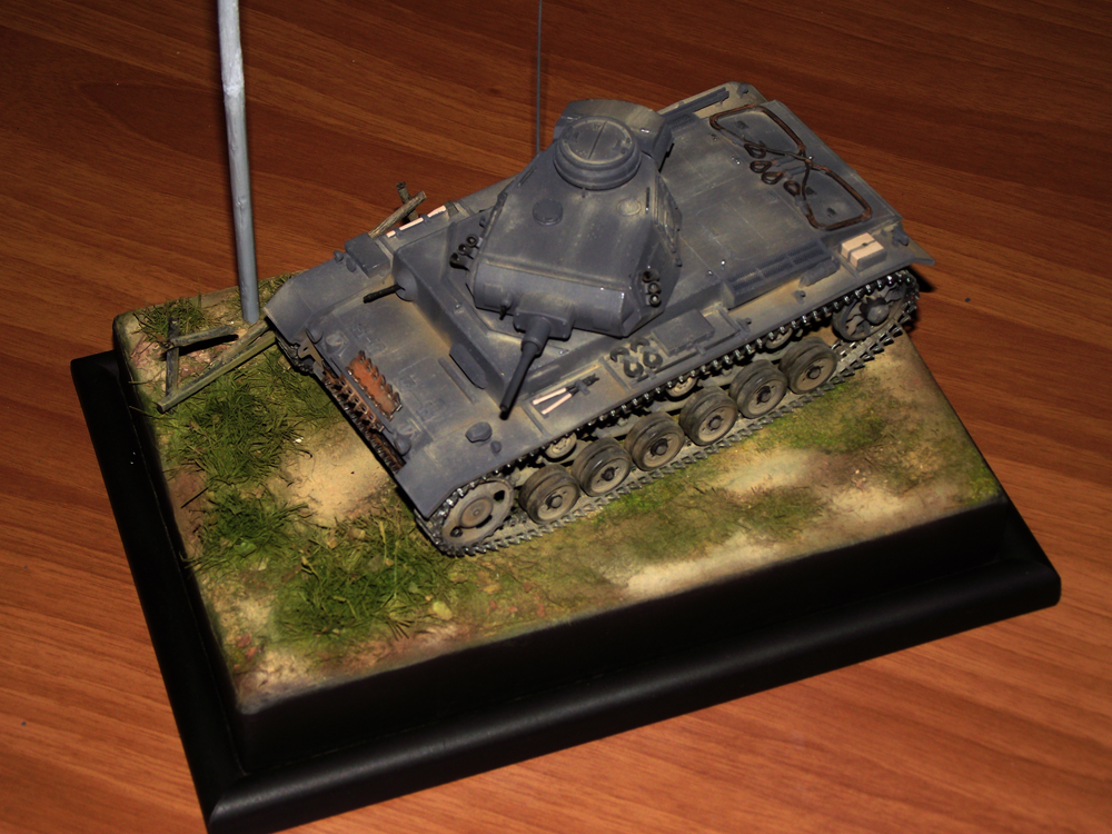 Big Killer Большой привет! несколько дней не был дома. Диорама очень приличная, что касается ландшафта, то вообще здорово. Это то,что я пока не освоил. Если не возражаеш, то разреши высказать несколько замечаний по 3-ке.( к стати это одна из любимых моих моделей, две из них я успешно испортил окраской) На фото конечно трудно рассмотреть детали, но мне кажется не четко проработаны щели люков МТО и трансмиссии.По крайней мере на фото они сливаются с общей броневой поверхностью.И маловато сколов кажется. Какого производителя у тебя "тройка" Не очень давно сделал 4-ку, попробую отправить.