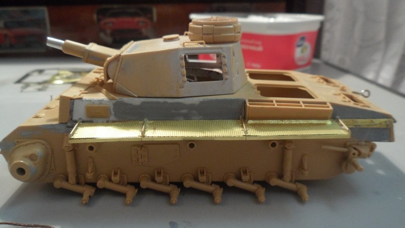 Прошу прощения, долго не выкладывался из-за ряда причин... За последние две недели доделал надгусеничные полки (травление воягер), расклеил головки болтов, которые срезал со звездовской "тройки". Пришлось менять расположение боковых лючков (на фото, я заметил, они не симметрично расположены). Сегодня начал делать забашенный ящик(травление абер). Остаются сварные швы (канавки под них прорезаны) и крепеж шанцевого инструмента (травлёнка). Планируется делать маленькую виньетку (нужно выбрать одну из фигур)... Можно будет красить. За фото извиняюсь...
