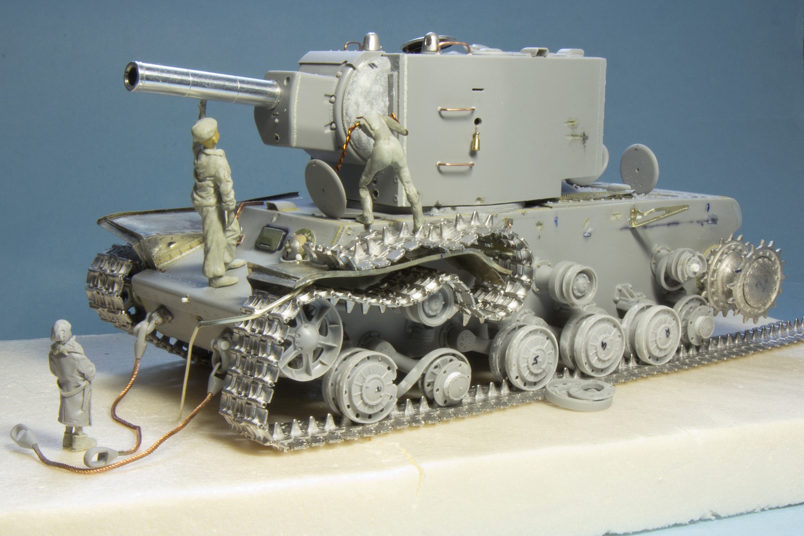 решил попробовать себя в лепке фигур. Сваял пацана на КВ-2. Получилось черте-что, но вроде похоже на человека... Планирую вот такую сценку с КВ-2
