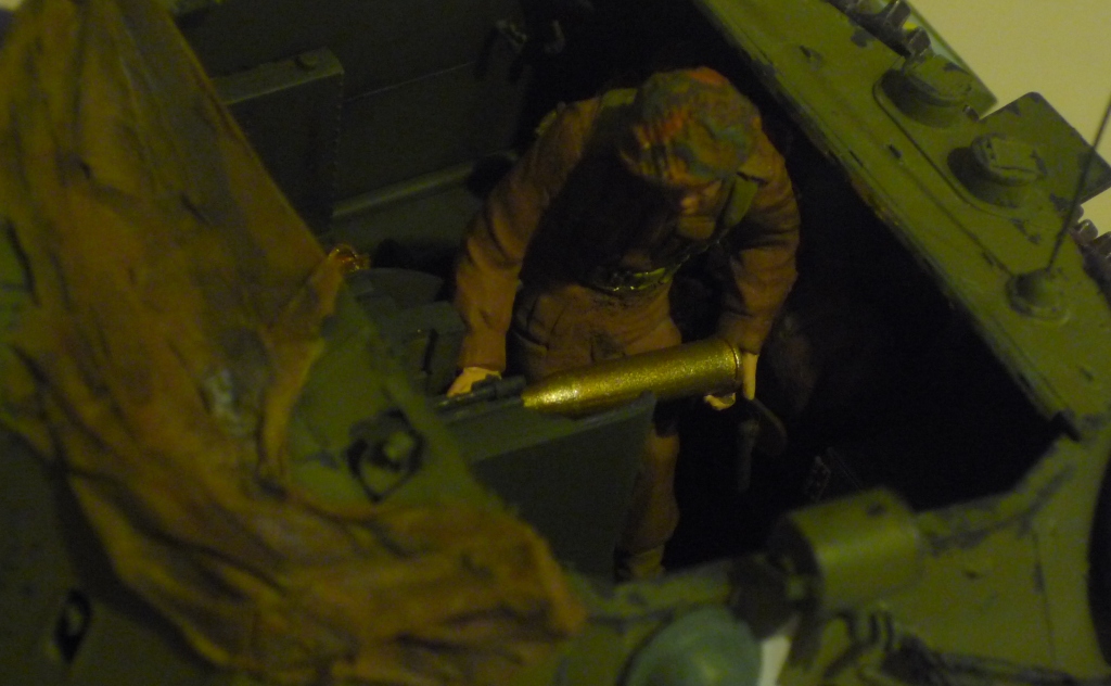 Глядя на полученную картину могу точно сказать что у танкистов «крепкое чувство локтя»- локоть заряжающего ласково соприкасается с головой боевого товарища – водителя.