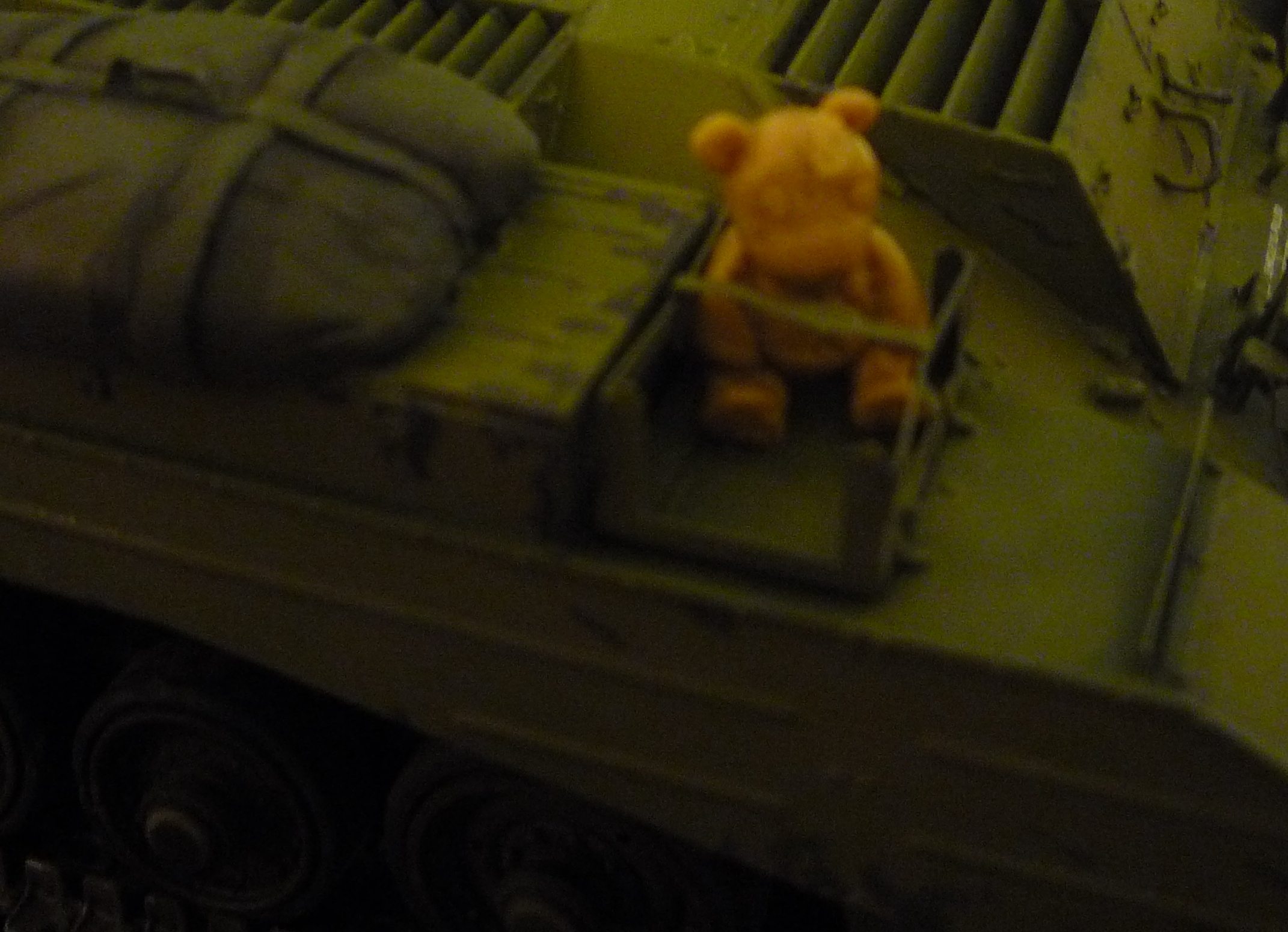 Я решил слепить такого для кого нибудь из членов экипажа. Кто-то из экипажа взял из дому или подобрал из разрушенного дома и он стал талисманом машины.