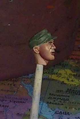 Кепи. База - U.S. Dark Green ( 95 ). Высветлитель - Iraqui Sand ( 124 ). Тонировка производилась так же, как и на лице - лессировками с последующим блэндингом, после прошёлся по теням смесью базы и Violet (047) в пропорциях 50%:50% - иллюзия сложного цвета. А потом самое интересное - я захотел сымитировать фактуру суконной ткани. Для этого смешал U.S. Dark Green ( 95 ) ( прим.20% ) и Iraqui Sand ( 124 ) ( прим.80% ) и наносил мелкие точки на светах, постепенно уменьшая "концентрацию" к теням. Результат достаточно спорный, но мне нравится.