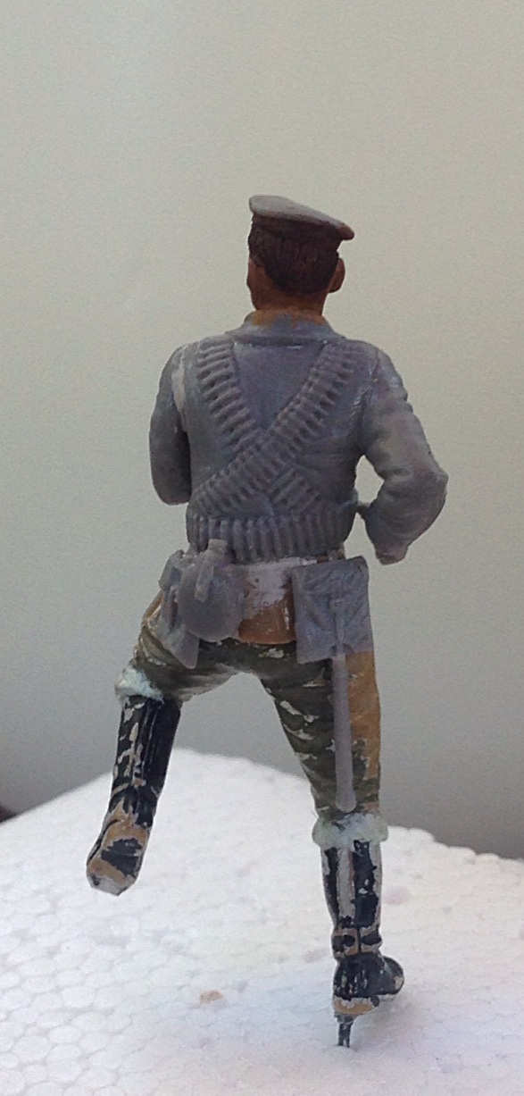 После долгого путешествия, наконец-то любимое хобби!!! Еще один из "моих".. Этот боец будет с СВТ, атаковать немца. Верхняя "часть" от бегущего бойца из набора морских пехотинцев (который в бушлате), а нижняя - уже даже не помню. Там была гимнастерка, подрезал, сделал вырез как будто бушлат..