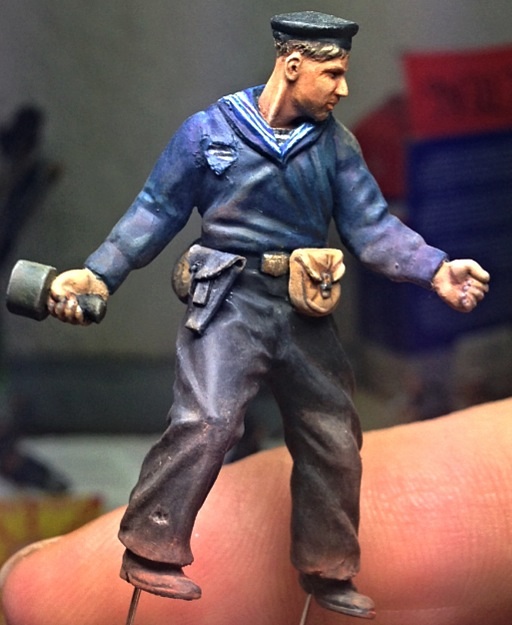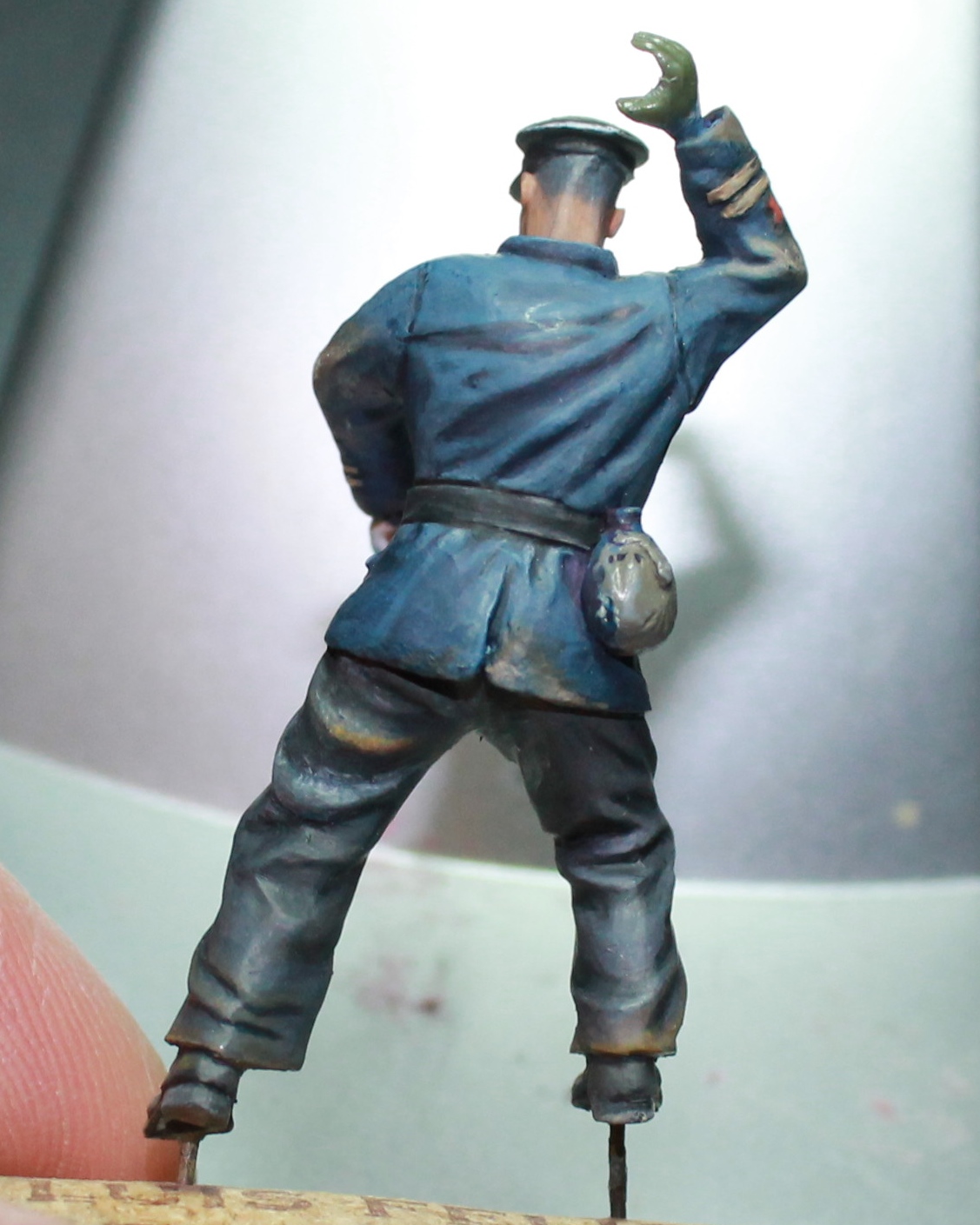 После долгого перерыва, выкладываю почти законченного бойца. Старшина второй статьи. Цвет кителя ушел немного в синий, попробую немного по экспериментировать с фотокамерой, позже..