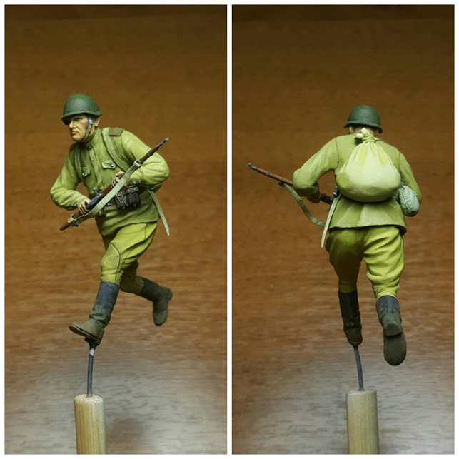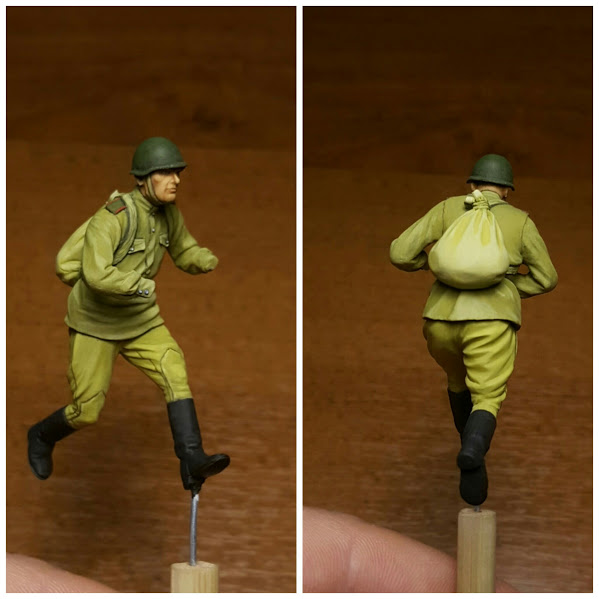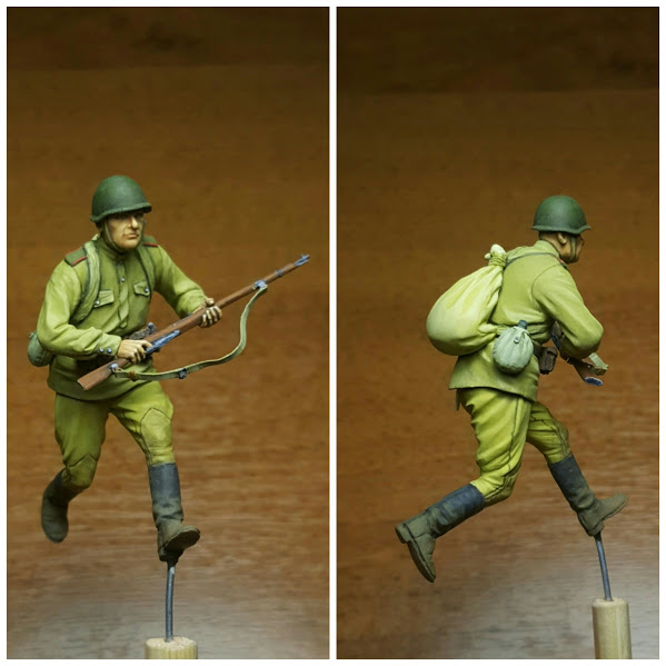 Поправьте если ошибаюсь. Покрашенная фигурка бойца, судя по погонам, рядовой. И если мне не изменяет память, то у рядового не должно быть карманов на гимнастерке. Тут либо карманы долой, либо звание повысить!)