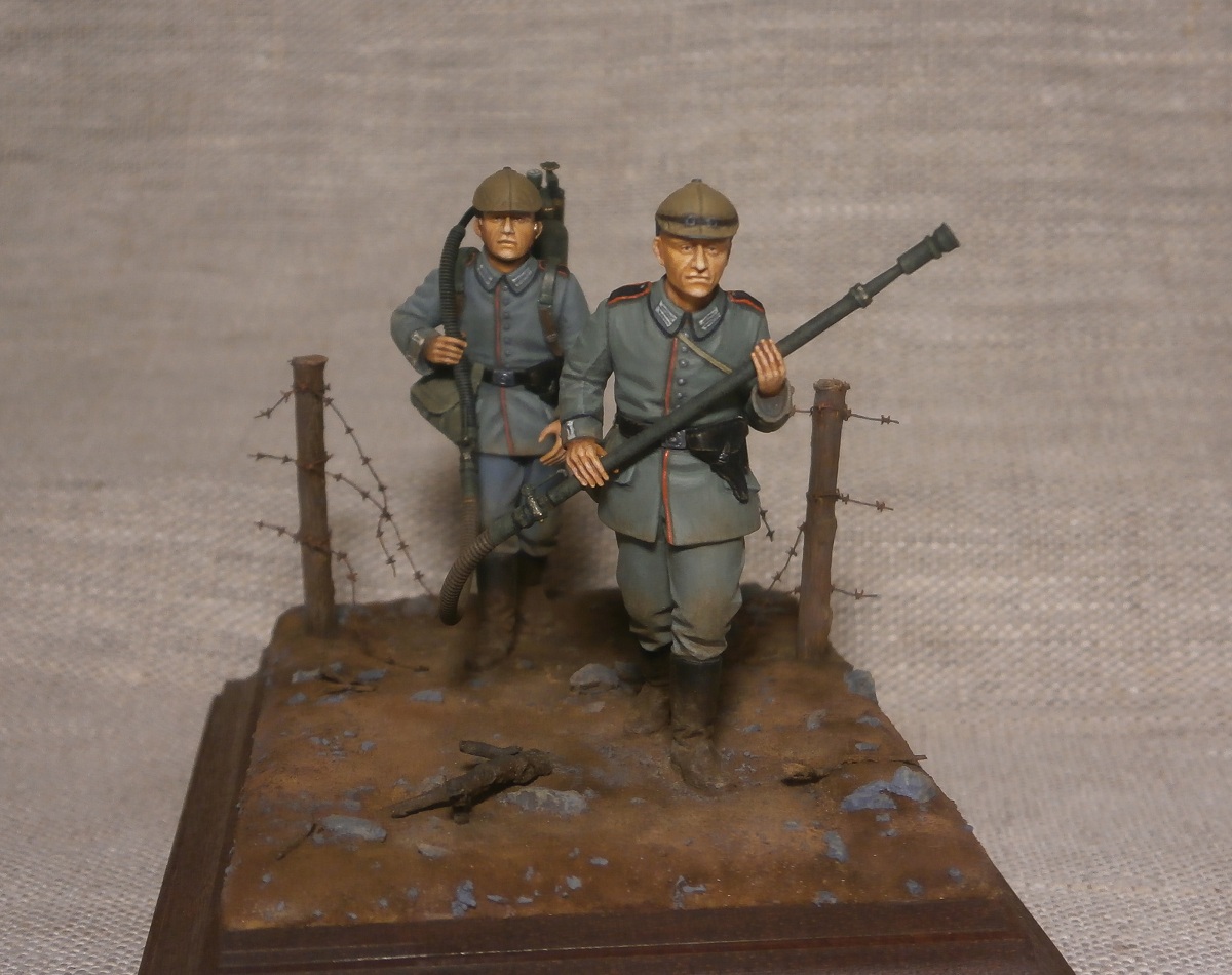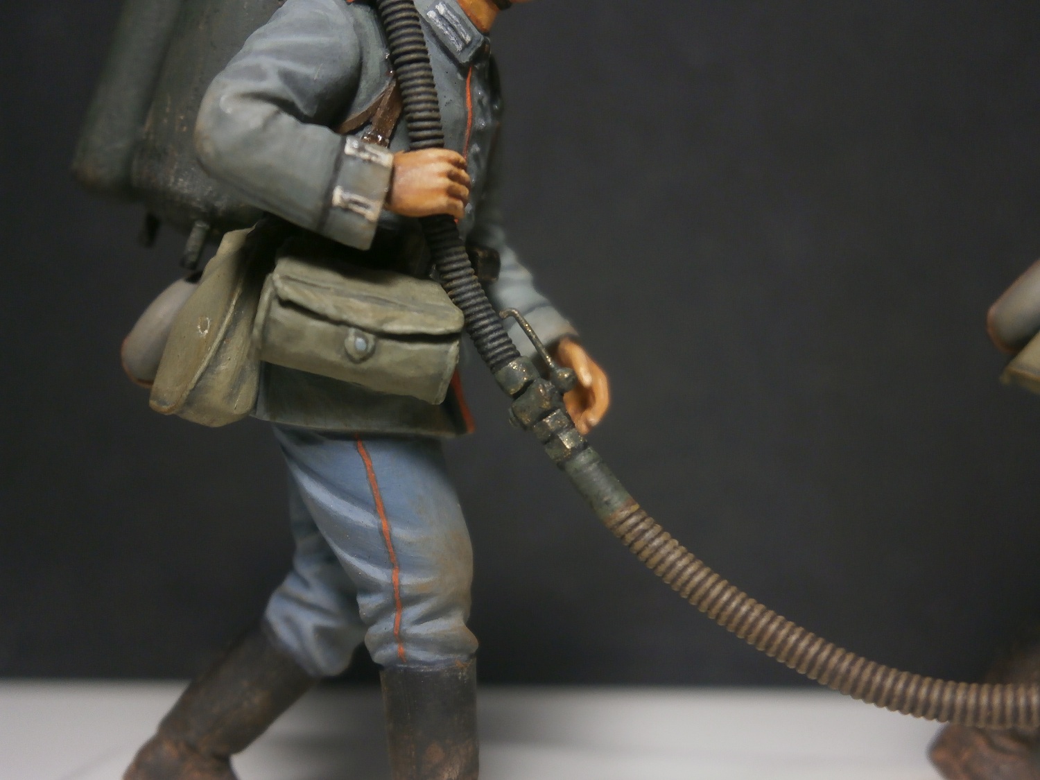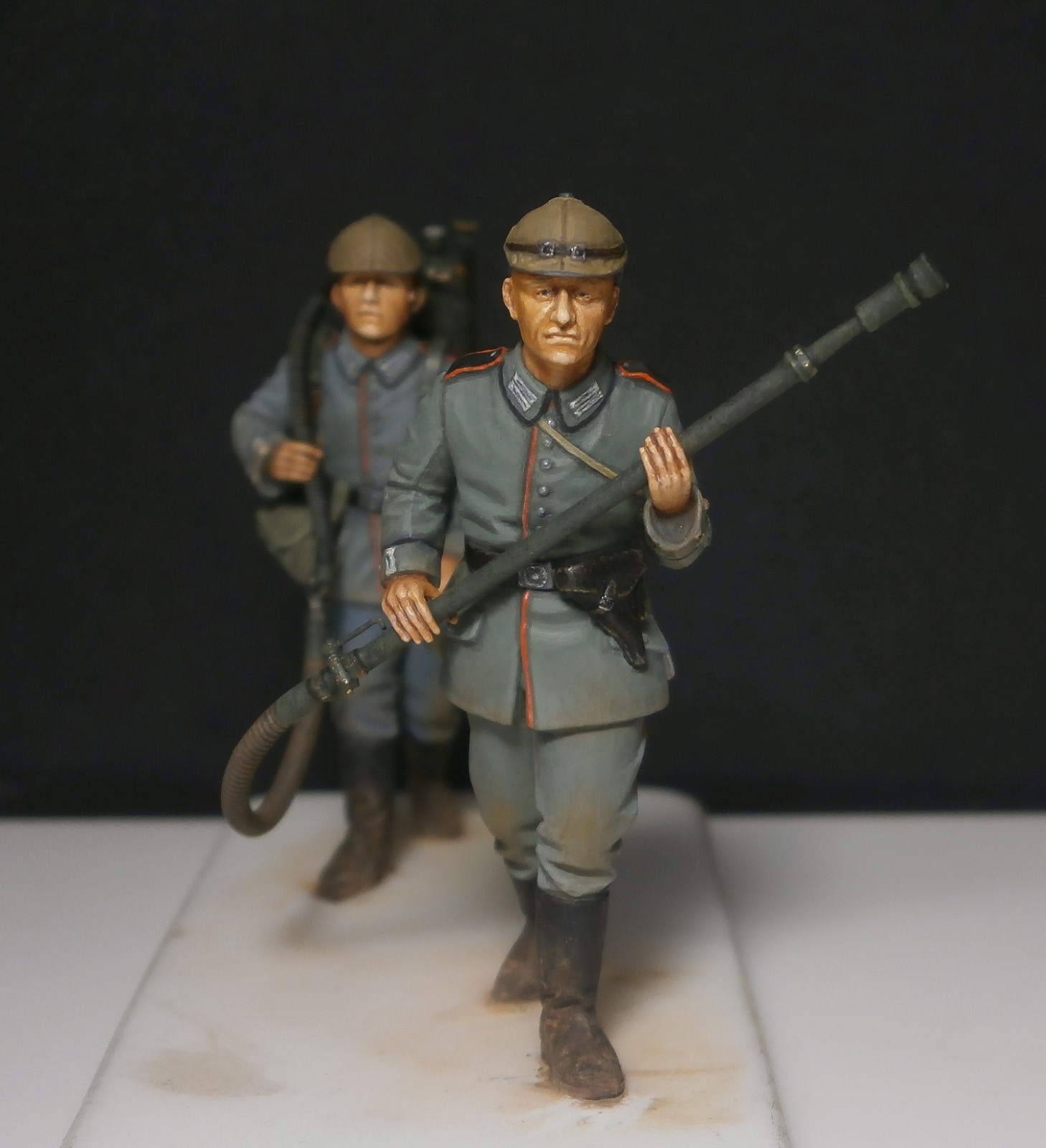 Неокрашенные рыжие "проплешины" пластика между светами и тенями на лицах и кистях рук смотрятся мягко говоря не очень.