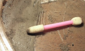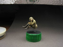 Во-первых, чем наносить? Я купил в отделе косметики пять кисточек-спонжей за 40 руб - по моему самый лучший вариант, лучше чем кисть по крайней мере. Во-вторых раньше я сталкивался с проблемой комочков и избыточного количества пигмента - если насыпать на что-нибудь немного пигментов и брать их кисточкой или спонжем, то часто попадаются комочки, которые на фигурке превращаются в резкий и насыщенный мазок, кроме того так работать не совсем удобно когда нужно взять совсем немного пигмента. И я случайно "нашел" новую "технологию" - нужно рассыпать немного пигмента, смочить (залить) обычной водой его и размазать по некой поверхности (в моем случае это крышечка от пластикового пищевого контейнера). Когда всё это хорошо высохнет, то пигмент как бы будет покрывать поверхность тонким и относительно непрочным слоем, этакой корочкой, отсюда преимущества: