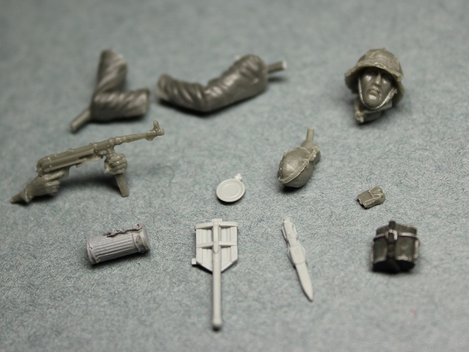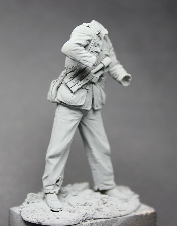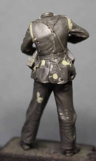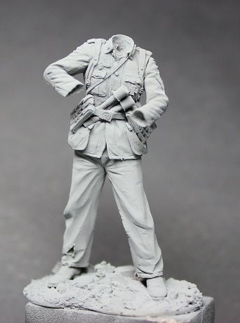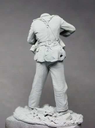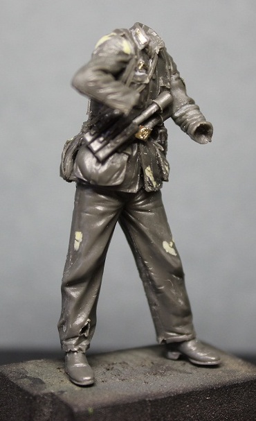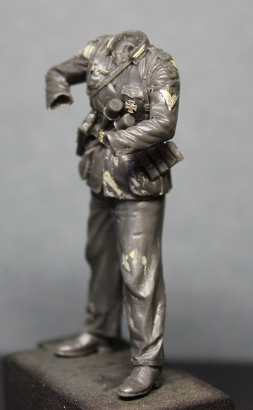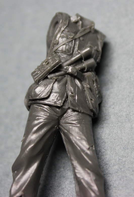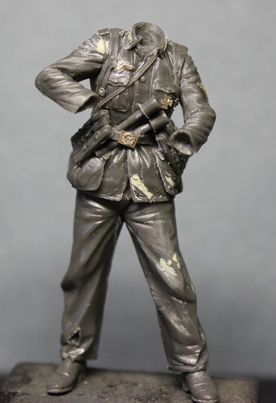 Уже не первый раз работая с фигурками этой фирмы был готов к невысокому качеству литья. Так оно и есть изменения к лучшему, к сожалению, не произошли. Вся навесная амуниция летит в мусорное ведро, хотя тут чуть повезло флягу можно оставить. Над небольшим облоем надо поработать модельным ножом и мелкой наждачкой. Невнятного нагрудного орла и петлицы пришлось срезать.