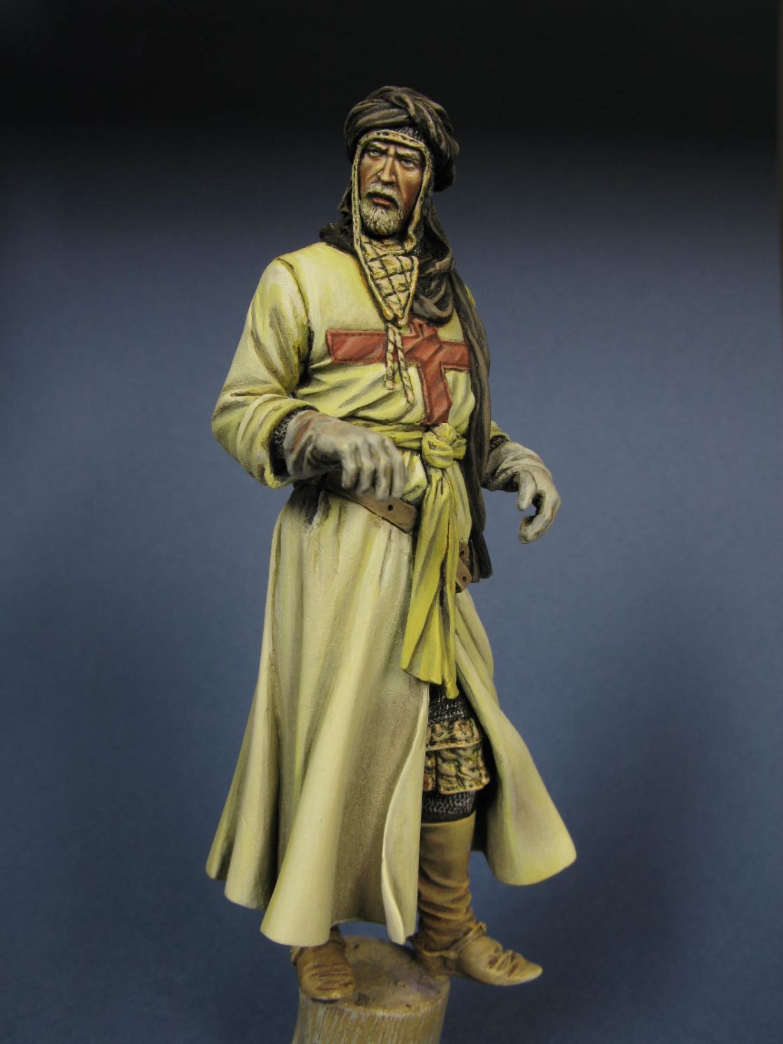 Хотя разница в в росте всего 80%,работы с такой фигурой раз в 8 больше.Огромная площадь плаща крестоносца предполагает мучительную,чисто техническую работу по растушёвке больших складок.По-моему к творчеству(созданию образа) это занятие имеет косвенное отношение.Не смотря на все разъяснения на форуме растяжка акрила для меня остаётся загадкой,в частности Валехо.Звезды у нас нет,в интернет магазинах,говорят,тоже.Может кто-нибудь посоветует что.Фигурка на данном этапе сухая.