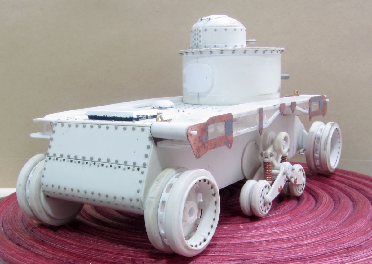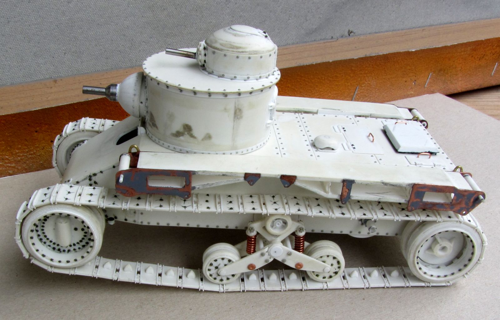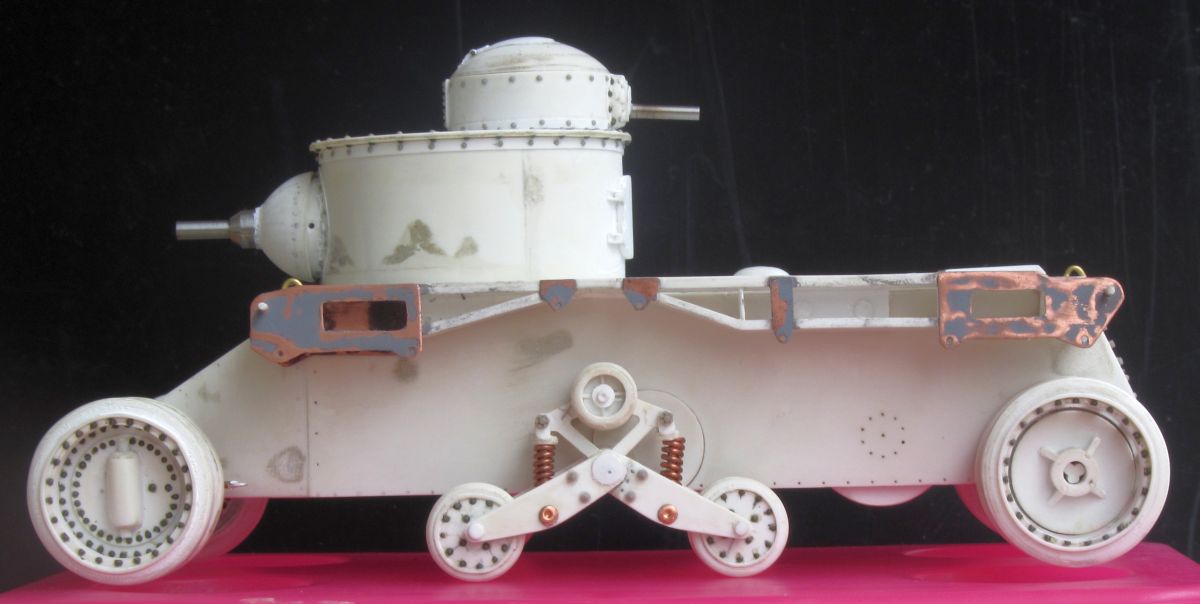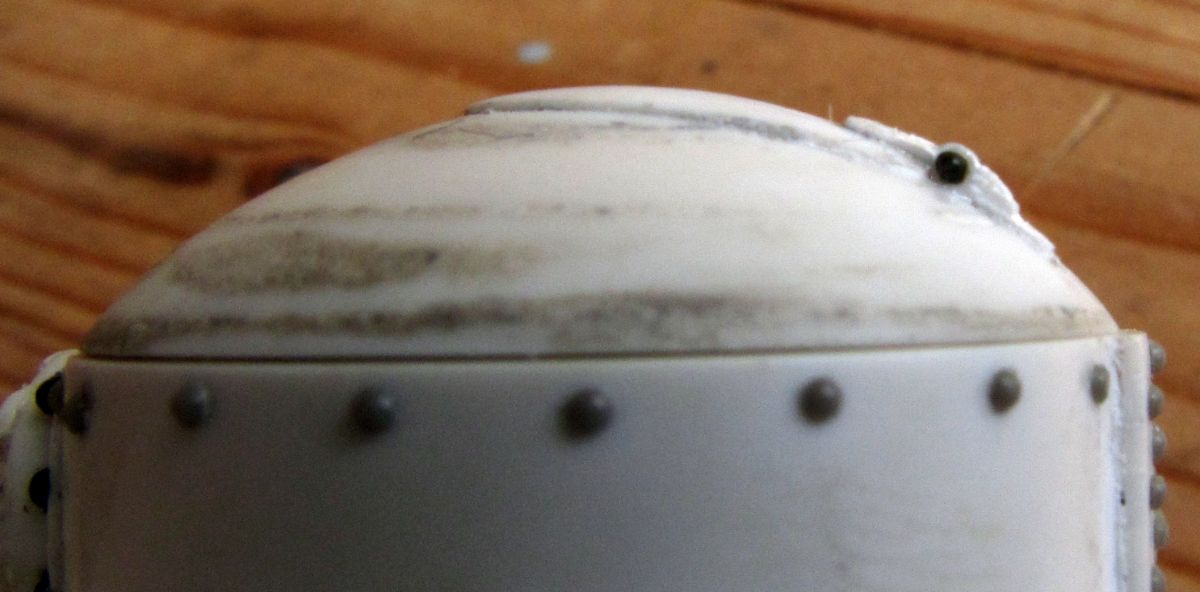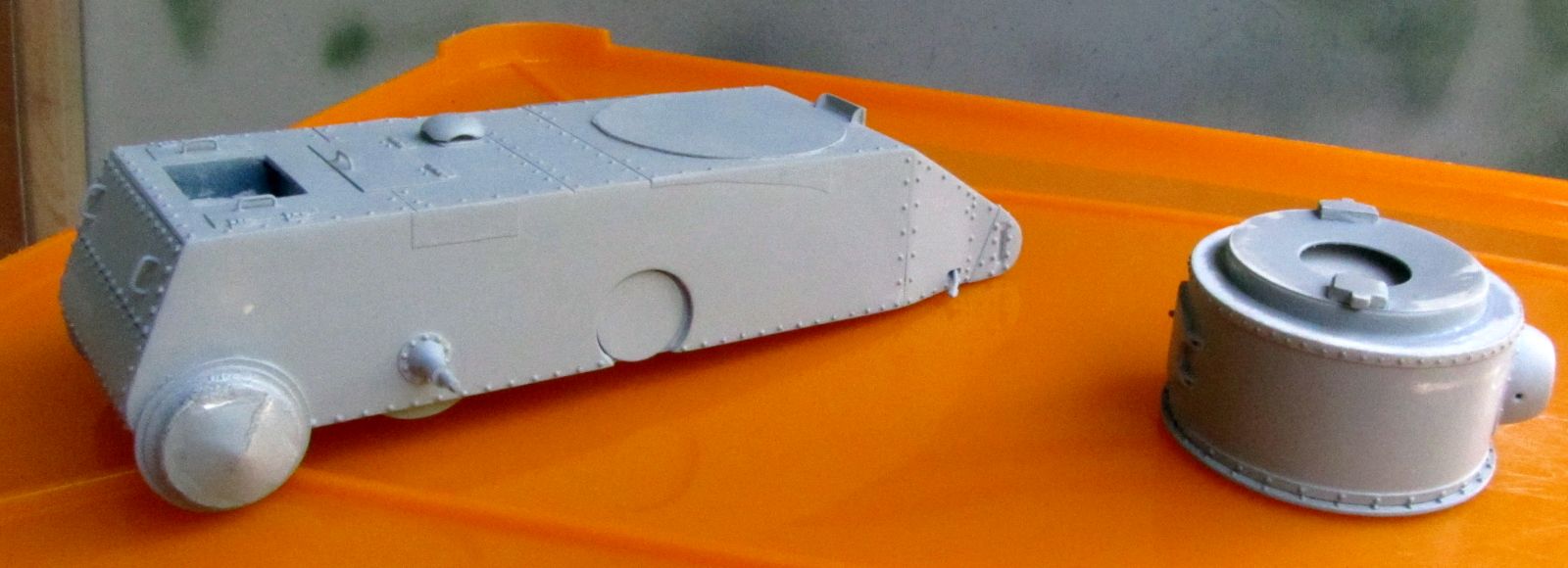 Не знал что делать, подумывал уже сделать башню заново, потом попробовал снять грунт всякой химией. Получилось, но снялся ВЕСЬ грунт. И я каждый день в течении полутора недель грунтовал на ночь башню, утром точил, приходил с работы снова точил, мыл и так далее. Вроде как вышло нормально.