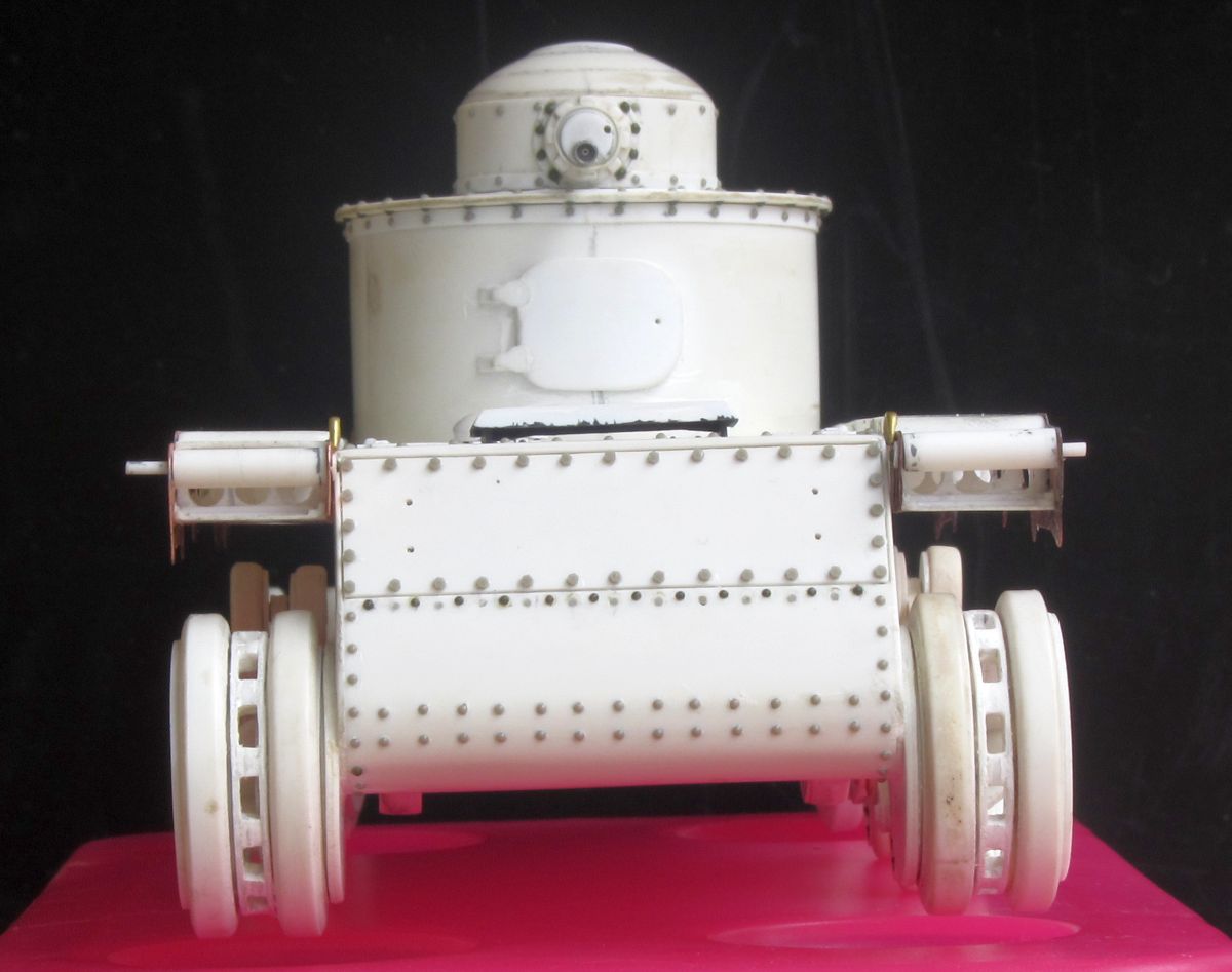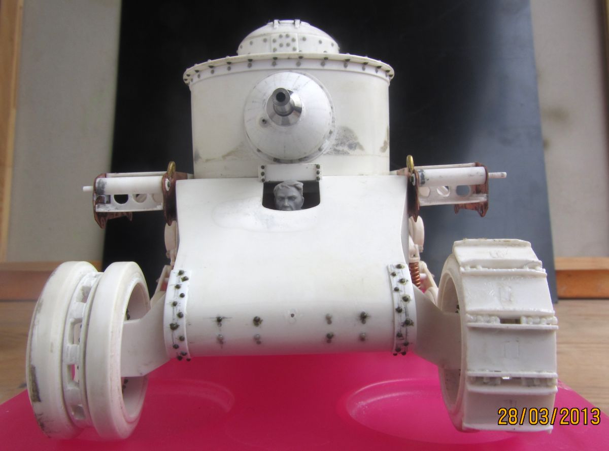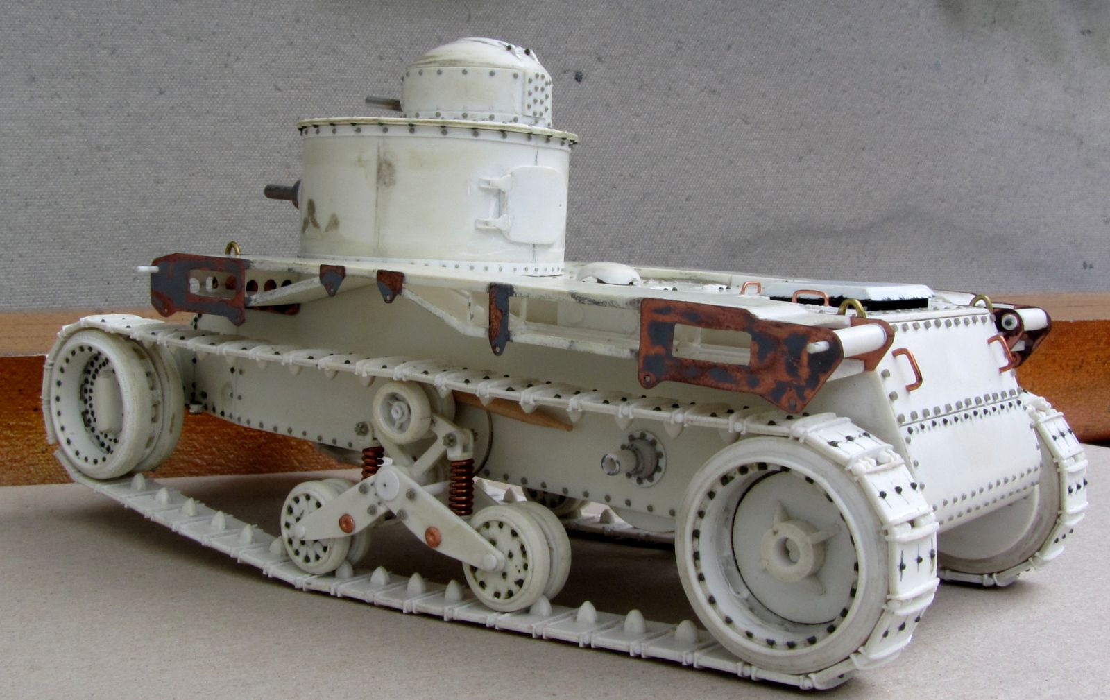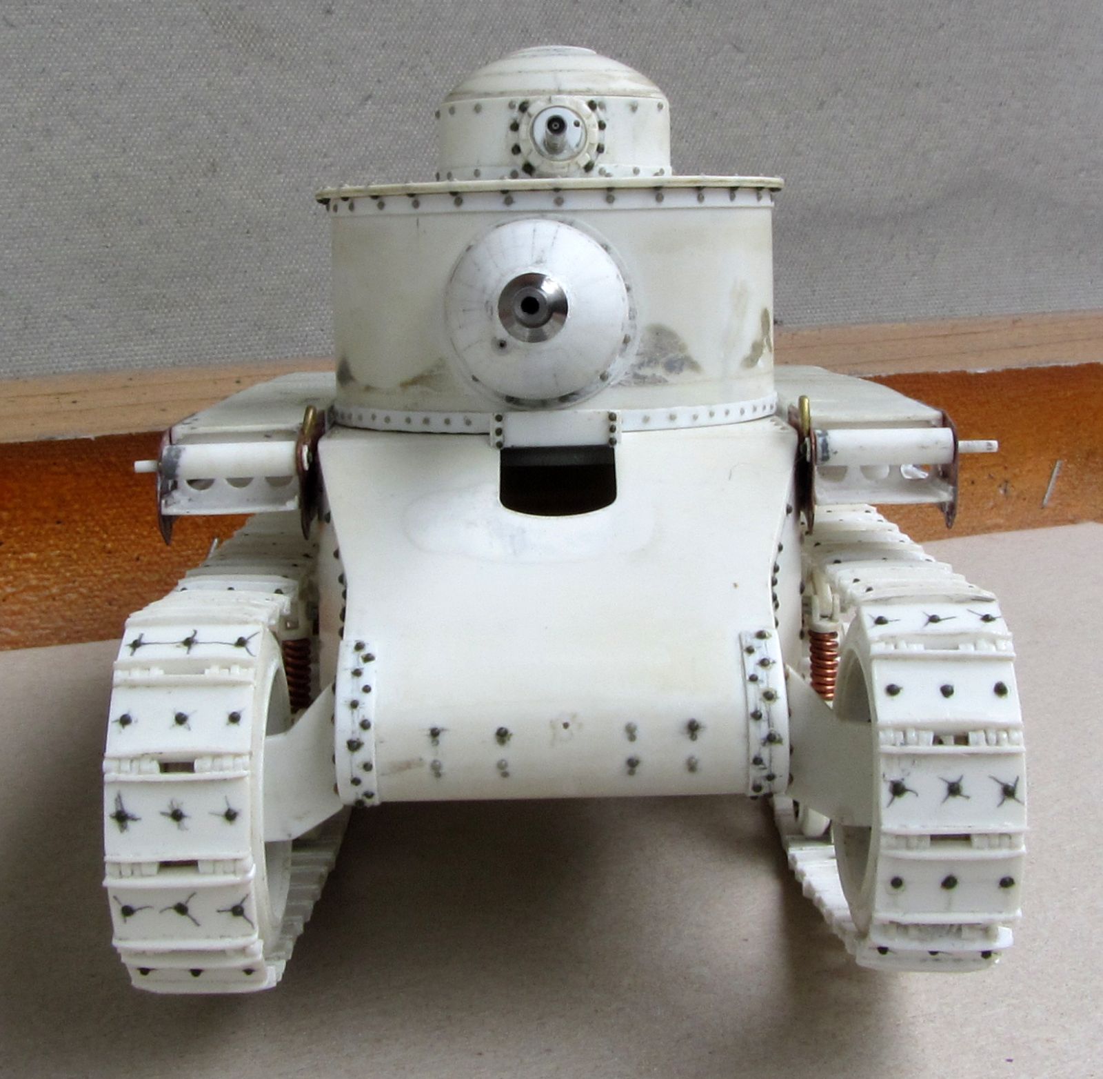 Не знал что делать, подумывал уже сделать башню заново, потом попробовал снять грунт всякой химией. Получилось, но снялся ВЕСЬ грунт. И я каждый день в течении полутора недель грунтовал на ночь башню, утром точил, приходил с работы снова точил, мыл и так далее. Вроде как вышло нормально.