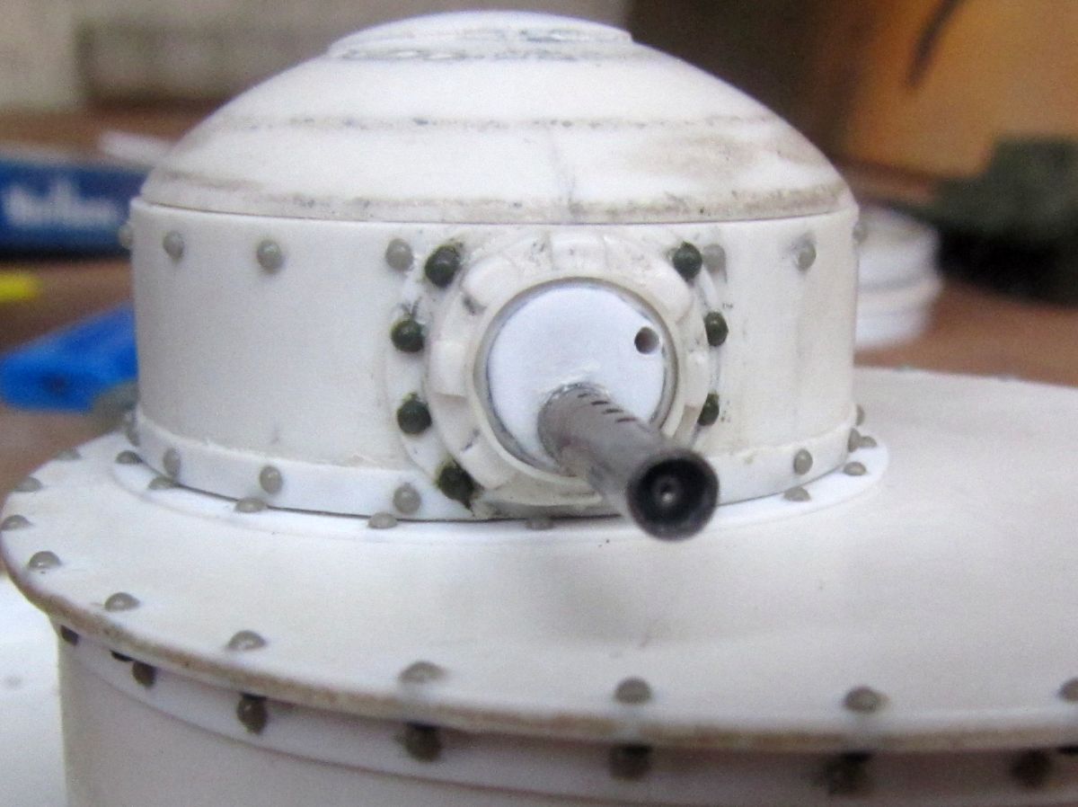 Получил и обмыл кожух пулемёта. Добавил ствол, окончательно установил по типу главной пушки.